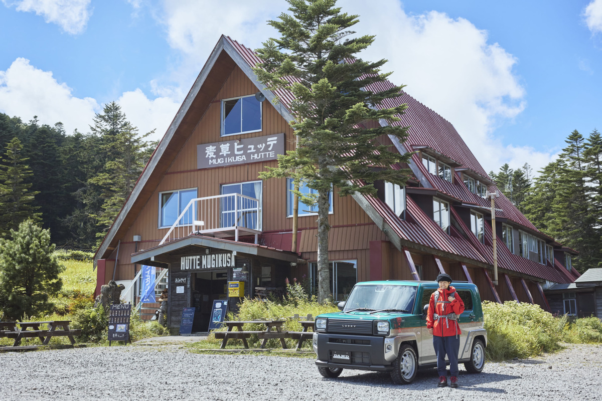 向かった先は北八ヶ岳の麦草ヒュッテ。レトロなたたずまいの車は三角屋根の山小屋や森になじみ、山好きにふさわしいと実感する。