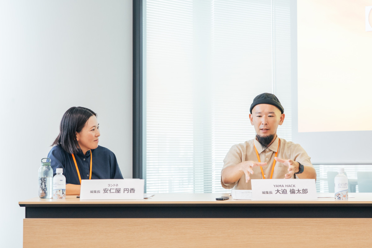 この日は、山と渓谷社が運営する「山と溪谷オンライン」の編集長・西村健さん、「YAMAP」を運営するヤマップ共創推進事業本部長の金海裕市さん、アドベンチャーガイズ代表で国際山岳ガイドの近藤謙司さんが登壇した座談会も開催。縦走やテント泊など、より本格的に山歩きを楽しむ方に向けたディスカッションが行われました。