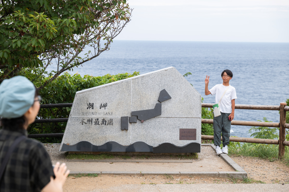 美穂子さん:「ジオパークセンターの目の前の芝生広場から海の方を見ると、きれいな水平線が広がっていました。地図上でしか見たことがなかった「本州最南端」の地に実際に降り立っていることに感動! しばし眺めを楽しんだ後、スマホで自分の位置情報を確認して本州最南端にいる事実にあらためて息子と盛り上がり、記念撮影。ただ、息子は東京ではなかなか見られない野良の猫たちを追いかけるのに夢中でした(笑)。」
