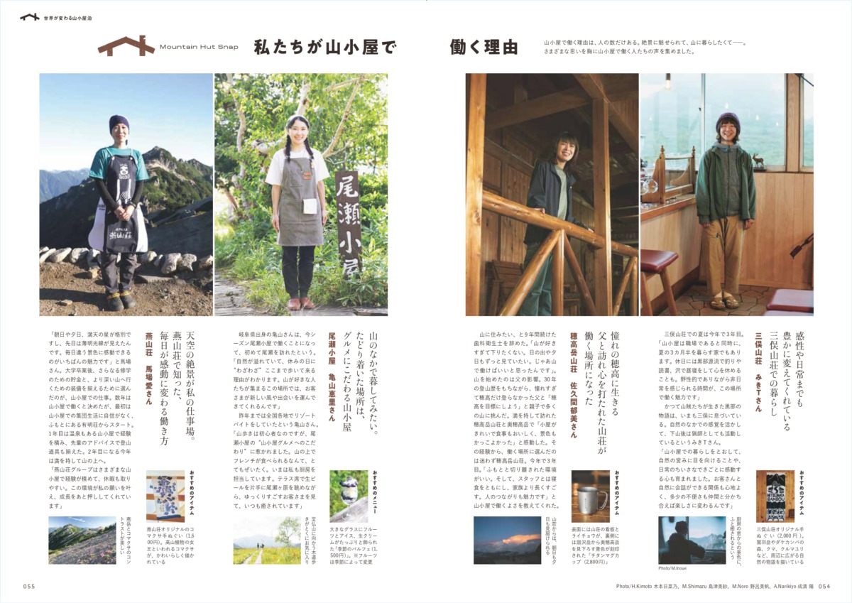 ▲山小屋で働く理由は、人の数だけあります。毎日変わる絶景に魅せられた人、父との思い出の山に導かれた人、尾瀬のグルメに惹かれて厨房に立つ人…。燕山荘、尾瀬小屋、穂高岳山荘、三俣山荘で出会った彼らの言葉に触れると、山小屋という場所が持つ温かさと、そこにしかない出会いの魅力に気づかされます。