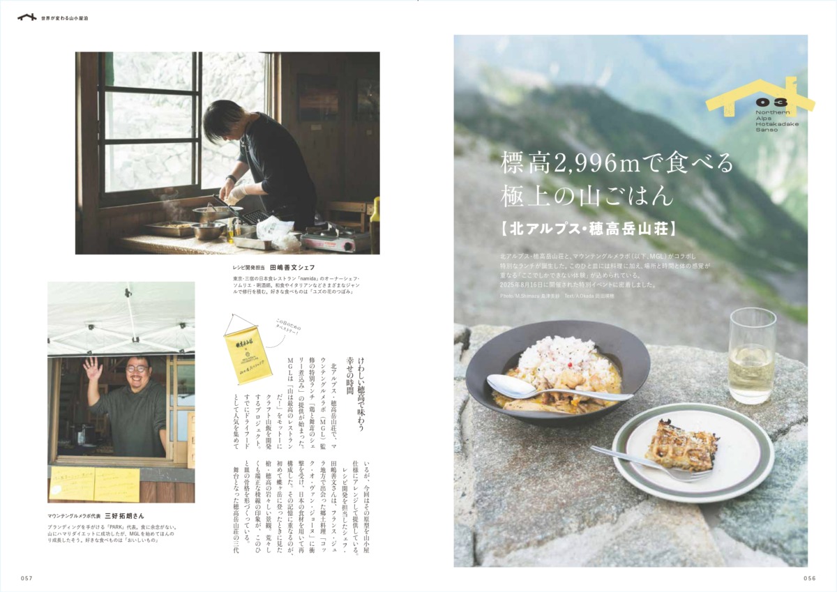 ▲標高2,996mの穂高岳山荘で、山小屋とは思えない特別なランチが誕生しました。マウンテングルメラボとコラボし、鶏と舞茸のシェリー煮込みなど、山の制約を生かした一皿を提供。険しい道のりを歩いてたどり着いた空気や景色が、料理の味わいをさらに深めてくれます。そこで出会う笑顔や時間までもが、ごちそうの一部。山で味わう一皿を体験してみませんか?