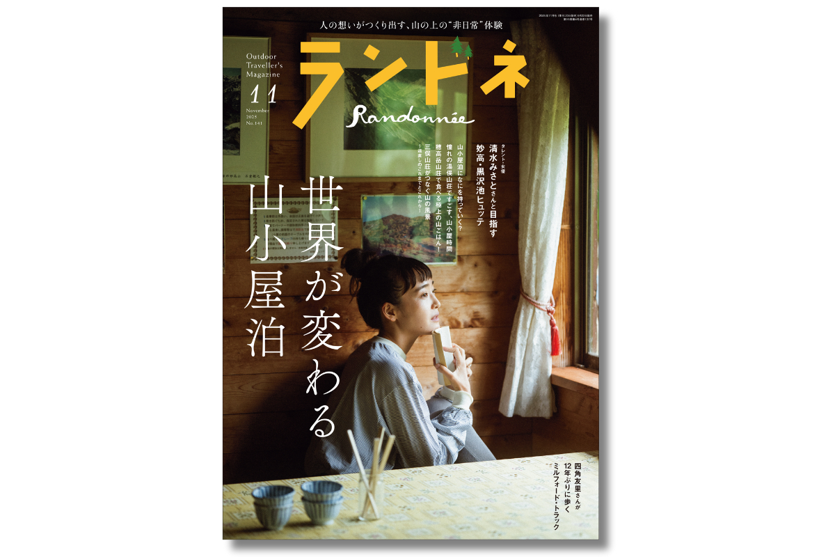 9月22日(月)発売『ランドネ11月号』の特集は、「世界が変わる山小屋泊」。