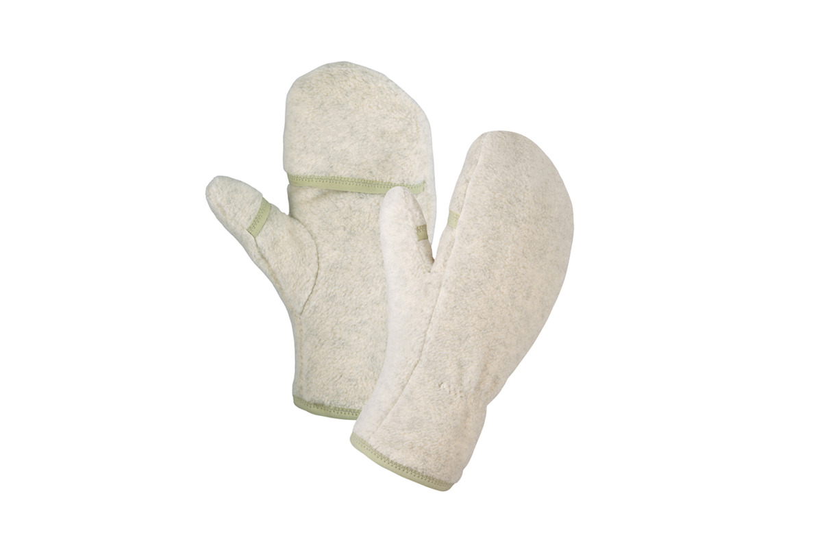 中厚手の保温性の高いフリース素材でできたミトン。指をカバーしている部分を外すと指先だけ出せるため、グローブをはめたまま細かい作業もしやすい。ストレッチ性と通気性にも優れていて快適な使用感。