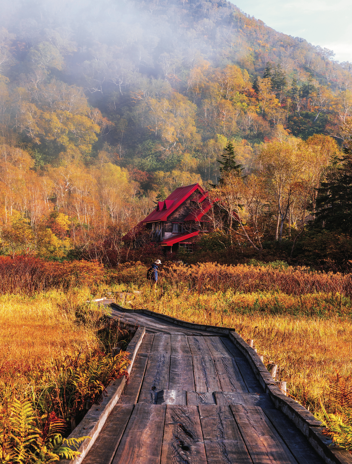 日本で国立公園が誕生した年に指定された中部山岳国立公園。3,000m級の山が連なる雄大な景観が美しい。公共交通機関が整い、高山植物や壮大な景色を気軽に楽しめるのも特徴で、上高地や室堂がその一例。それと並ぶ栂池自然園は標高1,900mに広がる高層湿原や白馬三山が美しく望める場所。9月から草紅葉が始まり、10月からブナやダケカンバの紅葉を満喫できる。宿泊は「栂池山荘」で。山小屋デビューにも◎。