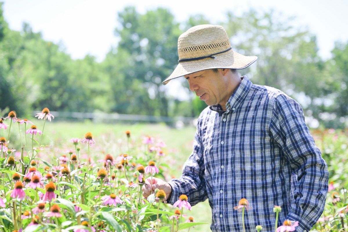 学生時代に農業を学びながらも卒業後は他業種に就職。30数年前に縁あって植物化粧品を扱うネイチャーズウェイに入社。研究開発部署や工場長を経て、農場責任者に就任。開墾から携わり、エキス研究と並行して管理している。