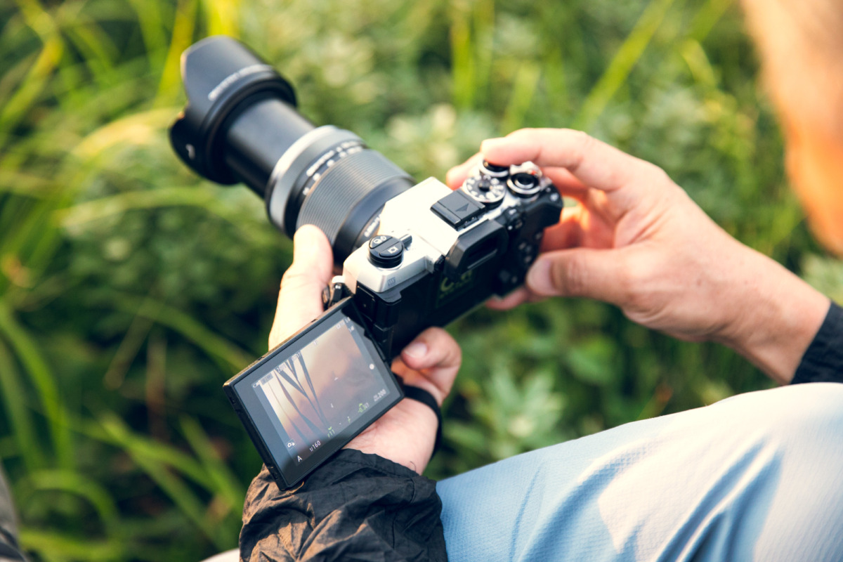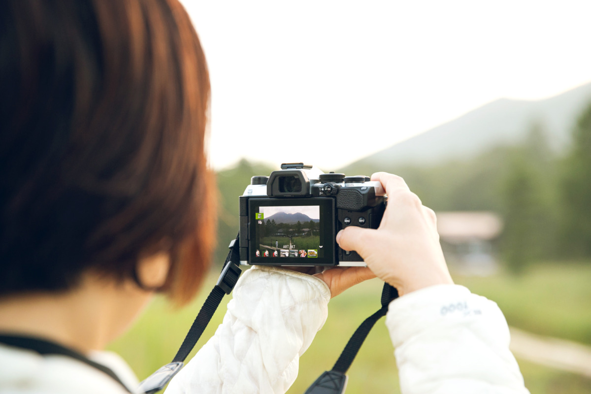 夕食後は、防寒ウエアを着て山小屋の外に集合。川野さんに教えてもらうのは、星空の撮影方法です。「OM-5 MarkⅡ」に搭載される「星空AFモード」を使用。星空AFモードは、明るい星を見つけてAF-ONボタンを押すことで、簡単にピントを合わせることができる機能です。「星空を撮影するときは、光を取り込めるF値の小さいレンズがおすすめ。まずはISO3200、シャッター速度30秒に設定して始めてみましょう」(川野さん)。