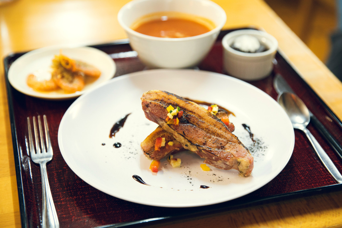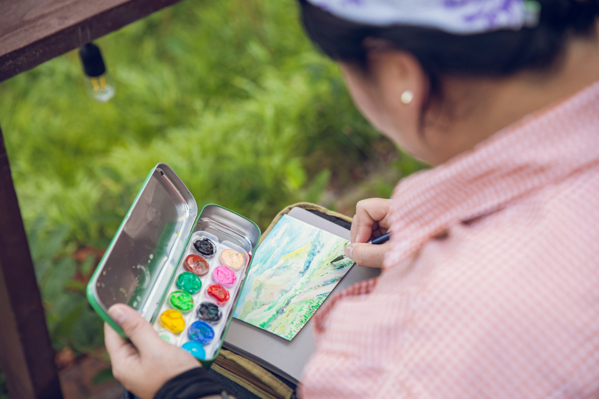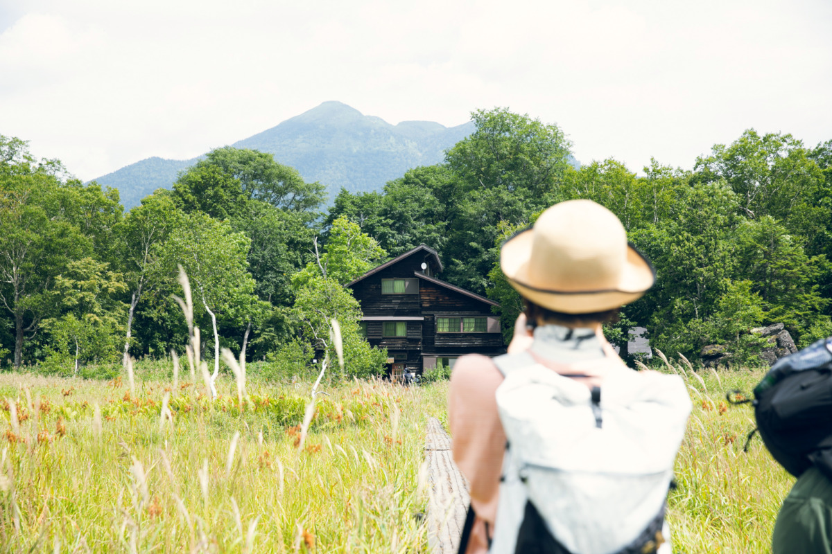 14時すぎ。この日の宿、尾瀬小屋に到着。予定どおり、たっぷりと6時間。移動距離は短くても、尾瀬の自然を隅から隅まで堪能した一行。チェックインを済ませたあとは、お風呂に入ったり、名物の“やまごやグルメ”を味わったり、尾瀬ヶ原を望むテラス席で絵を描いたり、自由な時間をすごします。