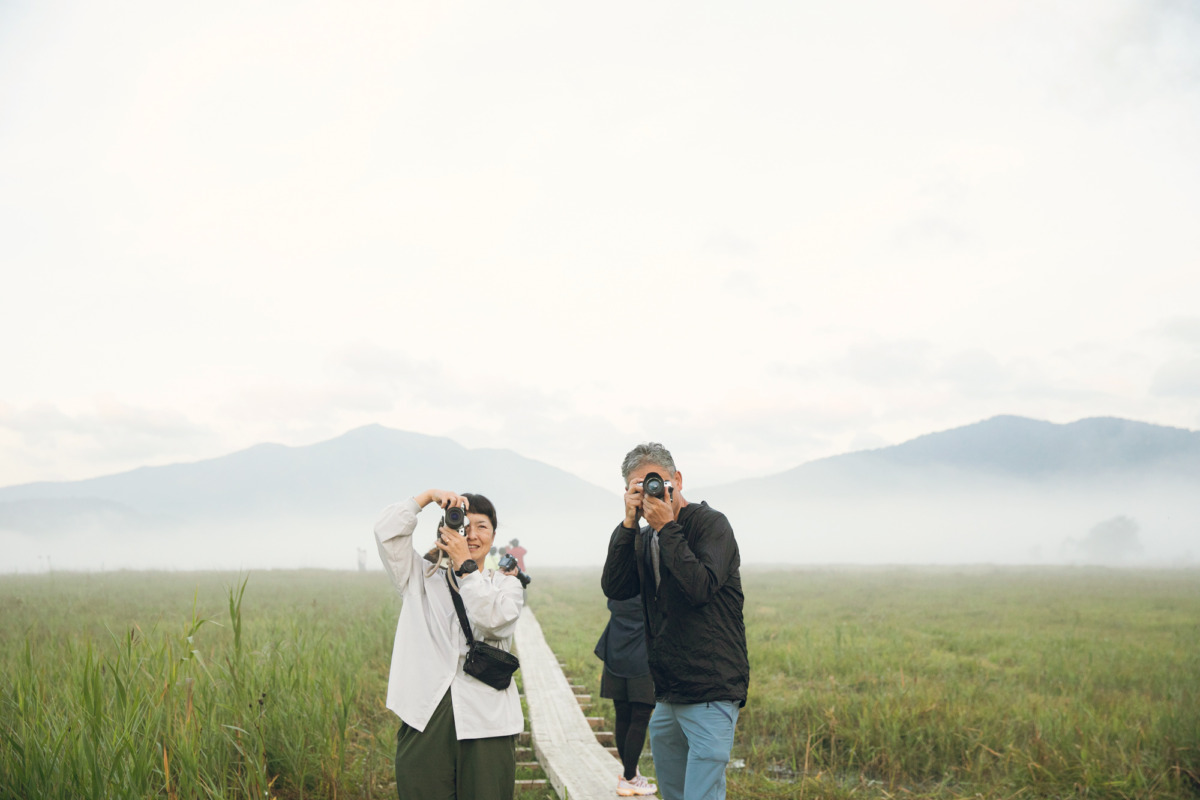 最終日となる3日目。日付は8月30日。尾瀬の日です。尾瀬の日を尾瀬で迎えることができる喜びは、やはり体験しなければわからないもの。2日間かけて尾瀬の魅力をたっぷりと味わってきた一行。けれど、1日たりともおなじ景色はないということを、尾瀬ヶ原に広がる朝靄なかでカメラを構えながら感じていました。