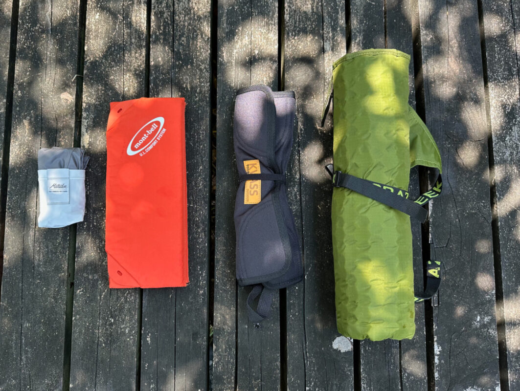 人の少ない山域ではベンチがない登山道も多く、また人気の山では空いているベンチを探すのがひと苦労。そんなときに携帯できるシートやチェアは便利です。今回は登山時に活躍するレジャーシート、コンパクト座布団、折りたたみチェア、折りたたみ座椅子の有用性や使い方について説明したいと思います。