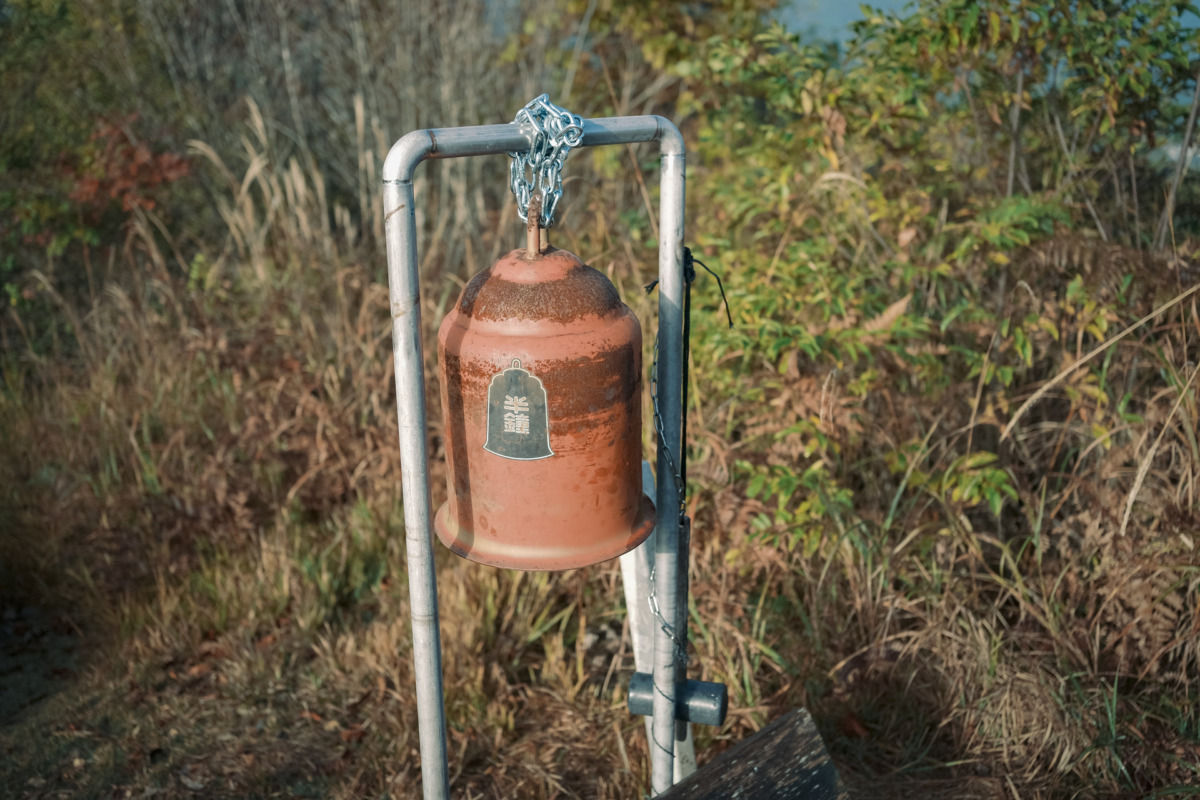 景色を堪能していると、あとから登ってきた長靴姿のお爺さんが山頂の鐘をゴォ〜ンとひと突き。山々を一瞥すると颯爽と降りていきました。う〜ん、スマート!今度マネしよう。