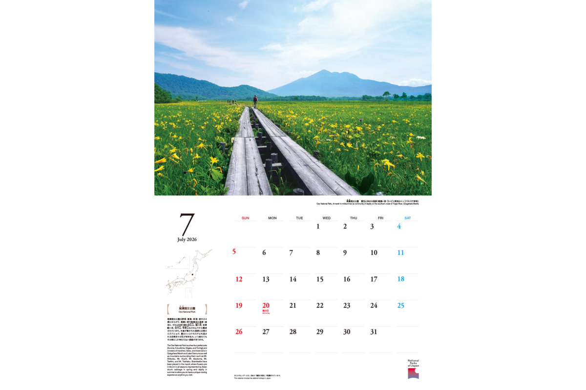 カレンダーの素材には、尾瀬国立公園の木道廃材を活用した「尾瀬の木道ペーパー」や再生エネルギーを使用。制作にあたって、自然資源を余すことなく活用しているのも特徴です。さらに収益の一部は、一般財団法人 自然公園財団が運営をする「国立公園基金」に寄付され、国立公園の環境保全に役立てられるそう。カレンダーを購入することで、未来の自然を守る手助けができるのもうれしいポイント。1年を通して、暮らしのなかで美しい国立公園の姿を楽しみたい!という方に手にしてほしい一冊です。