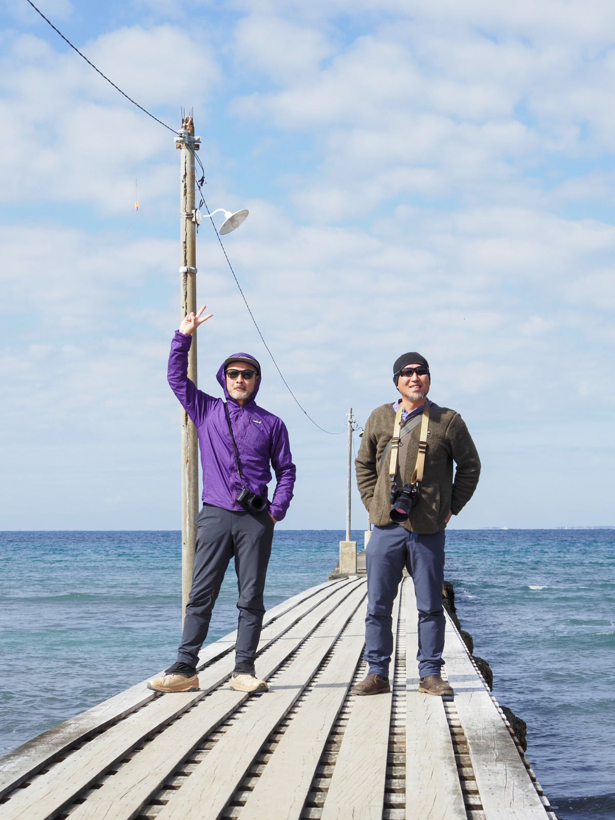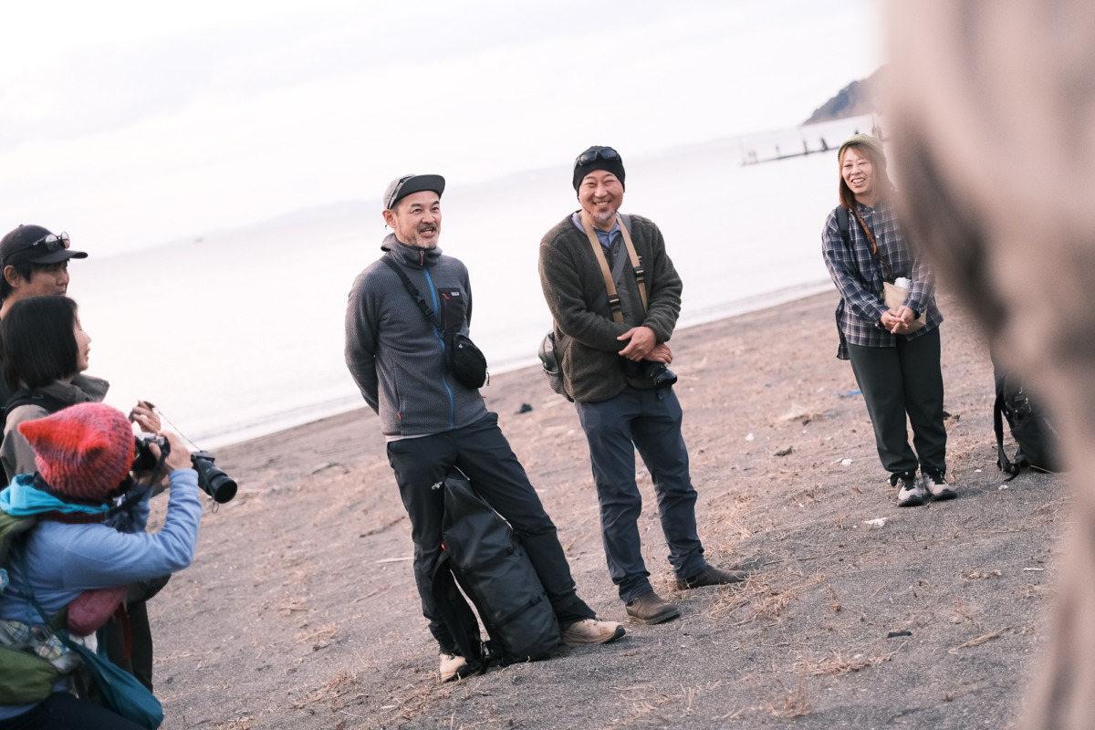2025年2月15日 記念すべき第1回目のフィールドワークは、低山トラベラー大内征さんとネイチャーフォトグラファー柏倉陽介さんをゲストに迎え、千葉県富浦市の大房岬自然公園を周遊しながら、写真と歴史を学ぶフォトハイク。水平線に向かって延びる木製の橋が印象的な、ノスタルジックな原岡桟橋からスタート。
