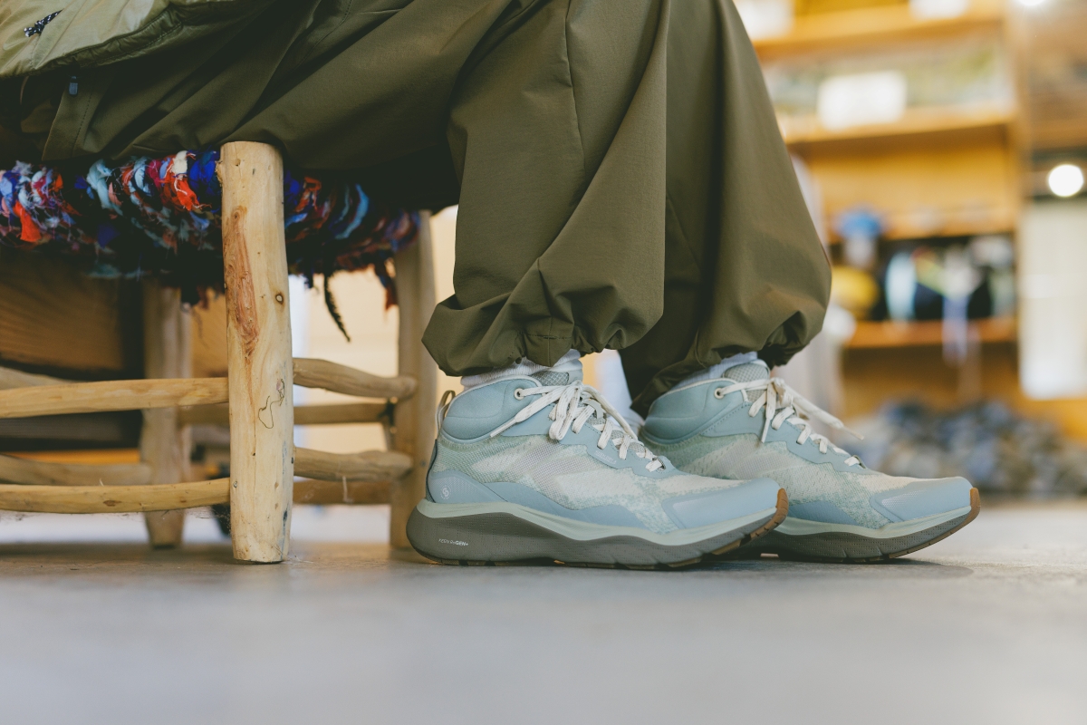 山歩きも町歩きも一足で楽しみたい、けれど山道を歩くときのサポート力や防水透湿素材などの機能性もほしい。そんな女性におすすめしたいオールラウンドモデルのミッドカットシューズ。さまざまなコーディネートに合わせやすいアイスバーググリーンは、ランドネ限定カラー。