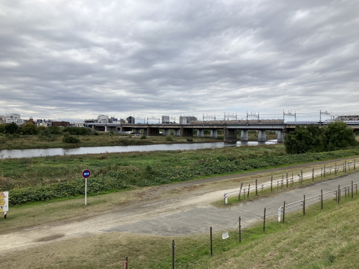 東急電鉄大井町線・上野毛駅から徒歩5 分ほどにある「富士見橋」。ここから富士山を望むことができる。あいにくこの日は見えなかったけれど、橋の上から見る大井町線と街の眺望は、高低差があるからこその景色が広がっていて、それだけでもすてき!