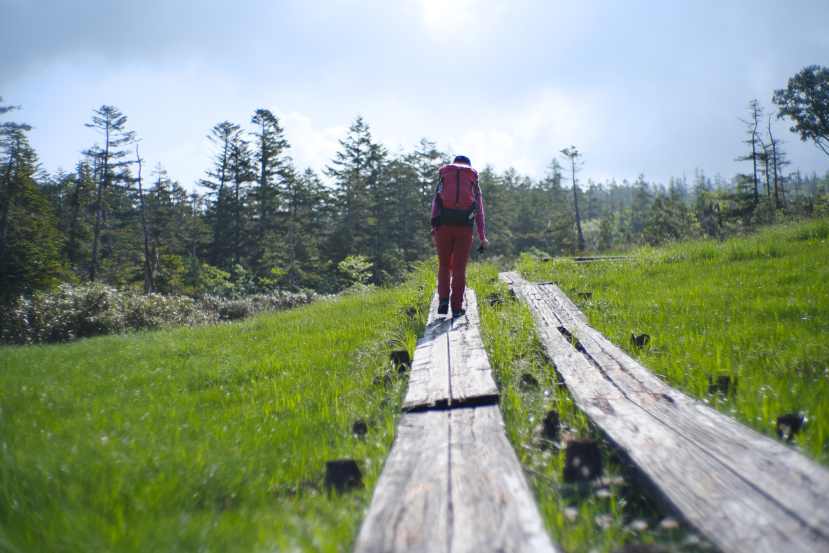 今年の夏は、ワタスゲが当たり年だと聞いてそわそわ。あの白いぽわぽわが大好きな私は、尾瀬のアヤメ平を目指しました。登山のスタートは鳩待峠。山ノ鼻に下る道ではなく、休憩舎の裏側から登山道に入ります。「鳩待ち通り」と呼ばれるこの道を歩く人は少なくて、とても静かです。