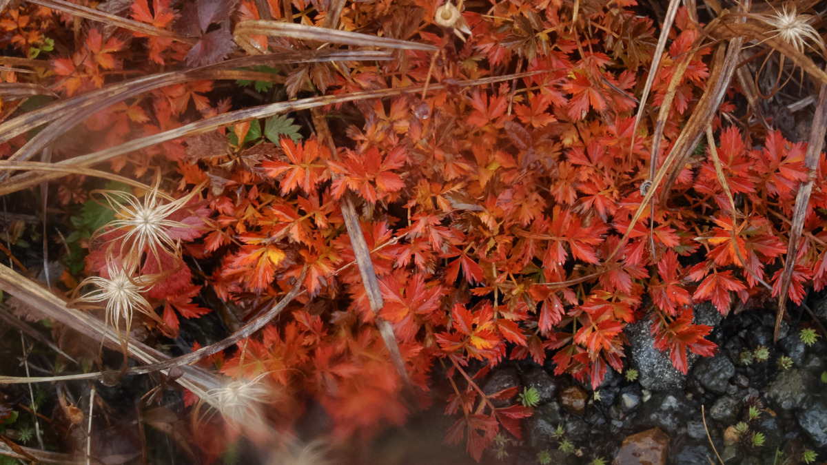 小屋を出るときには想像もしていなかった、天然のフィルターを通して見せてくれた乗鞍岳の紅葉の美しさが目の前に。カエデやナナカマドの赤、ダケカンバなどの黄色、ハイマツの緑……。