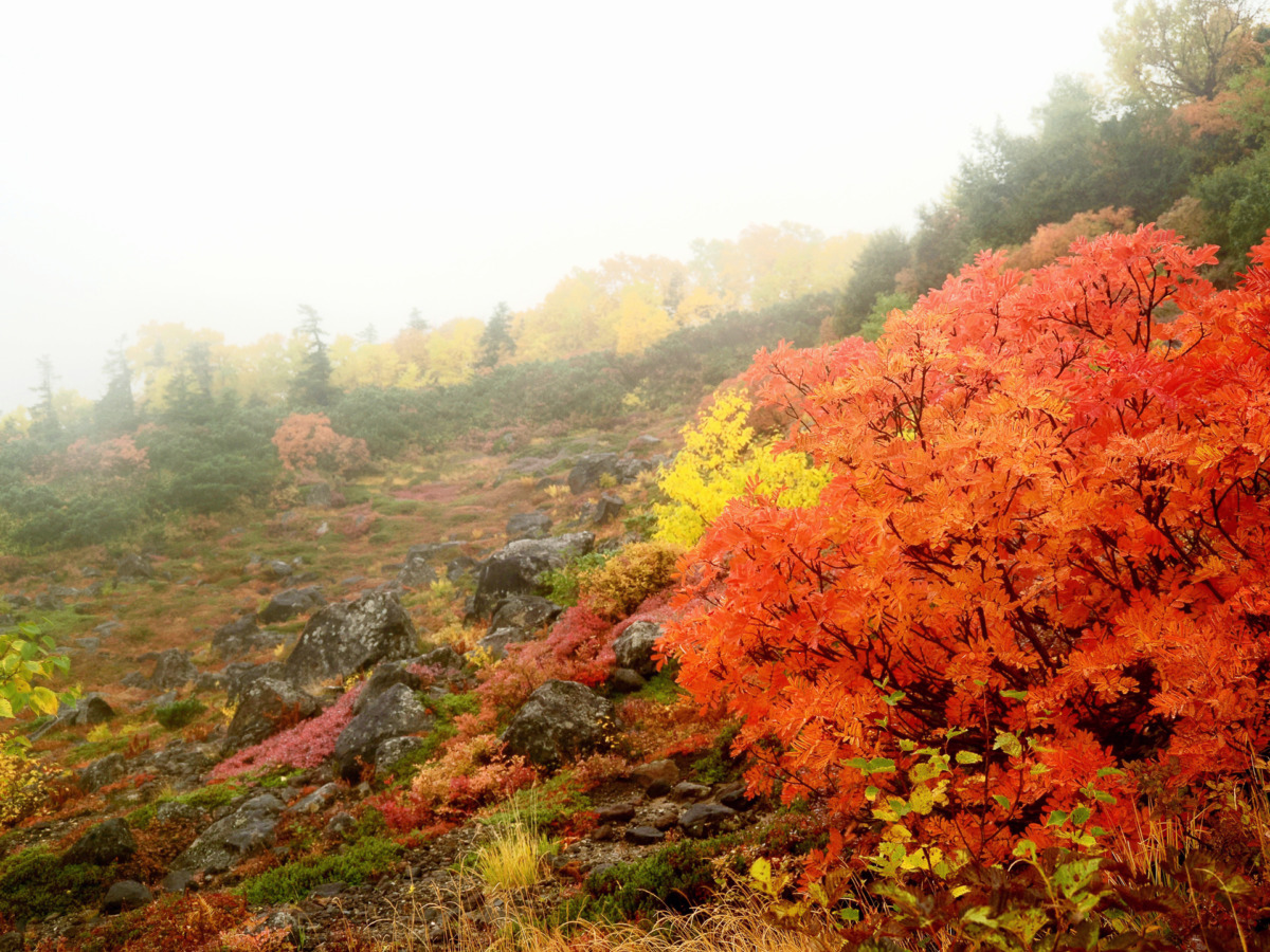 しかし、紅葉が見頃を迎えたフォトハイク初日の10月4日は、天気予報に晴れマークはなく雨と曇り……。そのため、この日の山には訪れる人の姿はほとんどありませんでした。