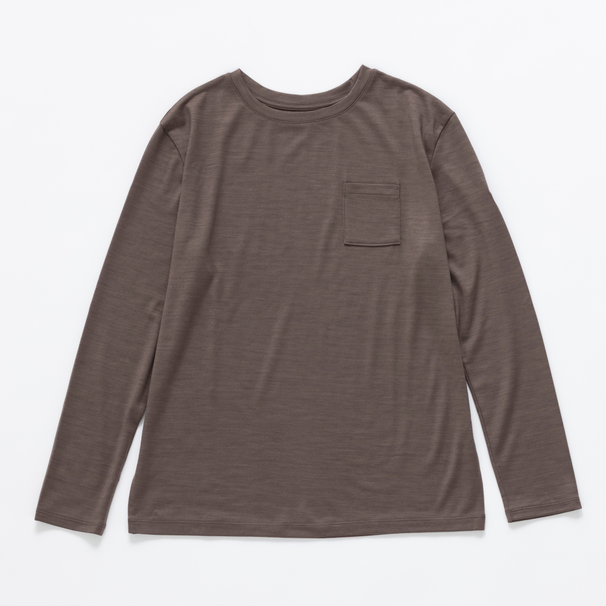 かわり芽/胸にポケット 長袖ウールTシャツ