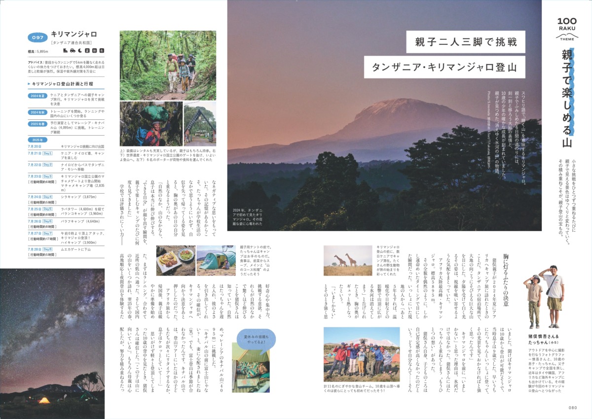 ▲フォトグラファーの猪俣慎吾さんと、10歳の息子・たっちゃんが親子で挑んだ「タンザニア・キリマンジャロ登山」。消えゆく氷河をこの目で見せたいという思いから始まった挑戦は、準備から本番までを含めた長い旅でした。この経験は、ふたりのこれからをそっと支える原点になるはずです。
