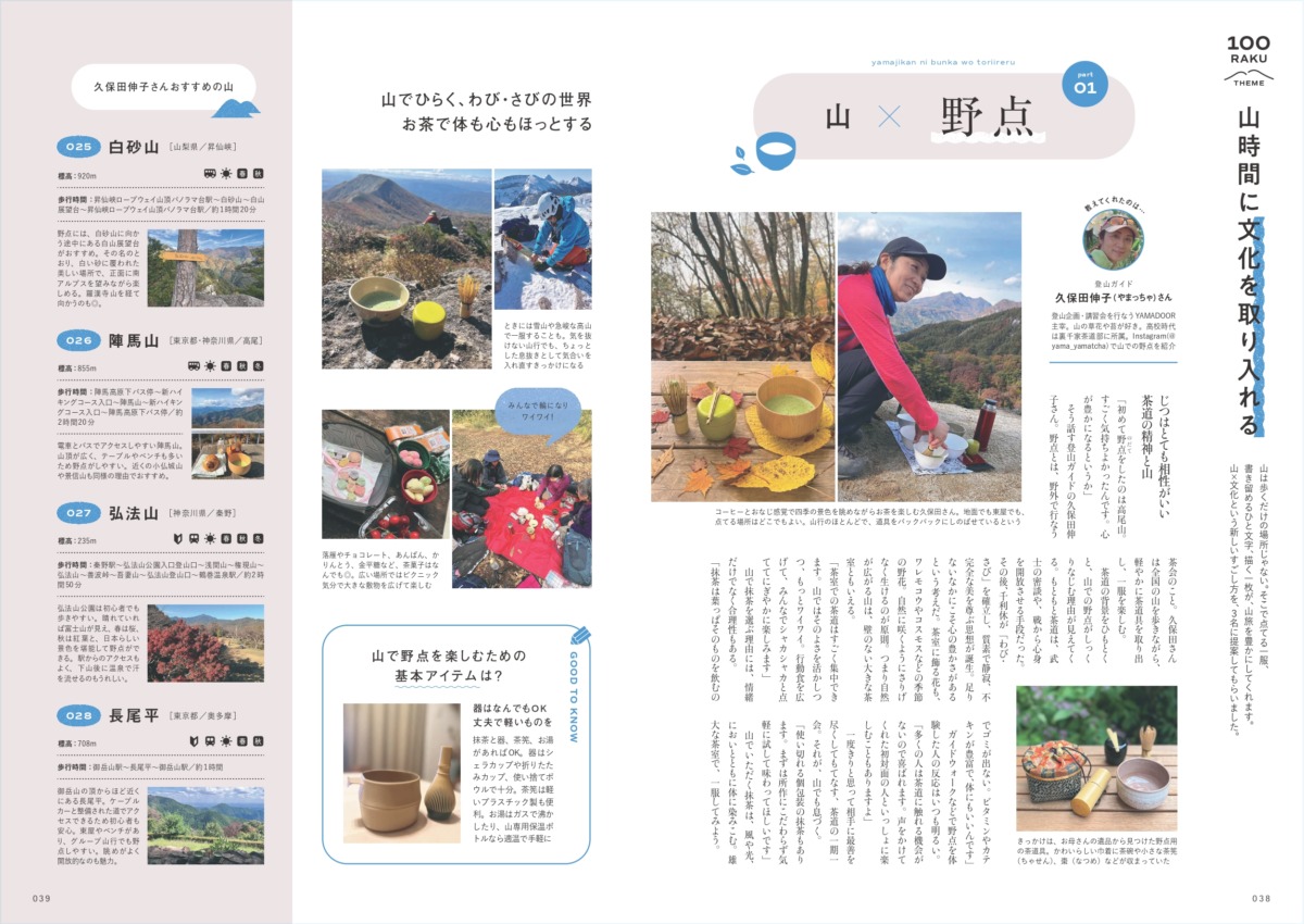 山を歩くと、さまざまなことに気がつきます。森がキレイだな、見たことのない石が落ちている、なぜ山で飲むコーヒーはおいしいんだろう、昨日までの悩みがすっと消えていく、こんな絶景が見られるなんて――。それらはすべて、「山歩き+αの楽しみ」へとつながっていきます。