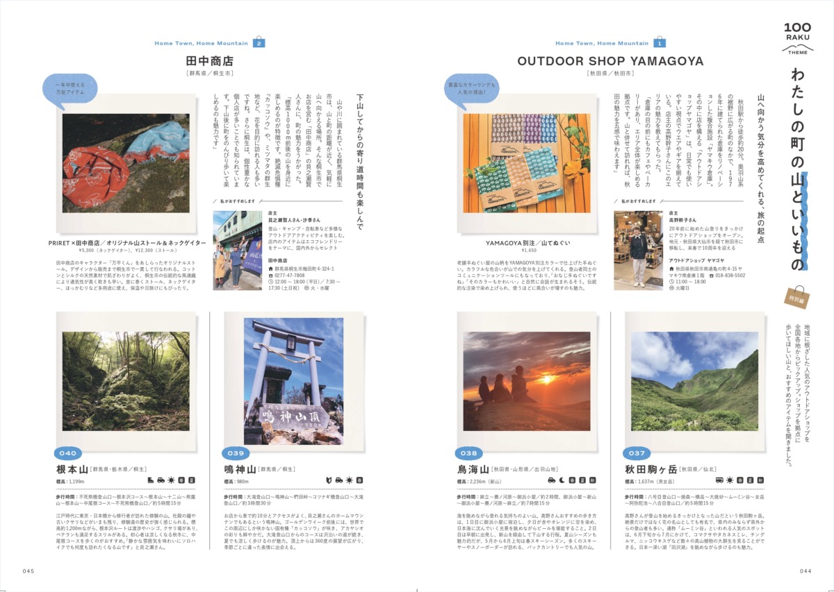 みなさんにとっての“山の楽しみ”はなんですか?今回の「100楽山」は個性豊かです。歩きなれた山も、楽しみ方を変えてみたらまったく異なる山に見えてくる。ページをめくりながら、自分のスタイルに合うお気に入りのひと山を見つけてみてください。