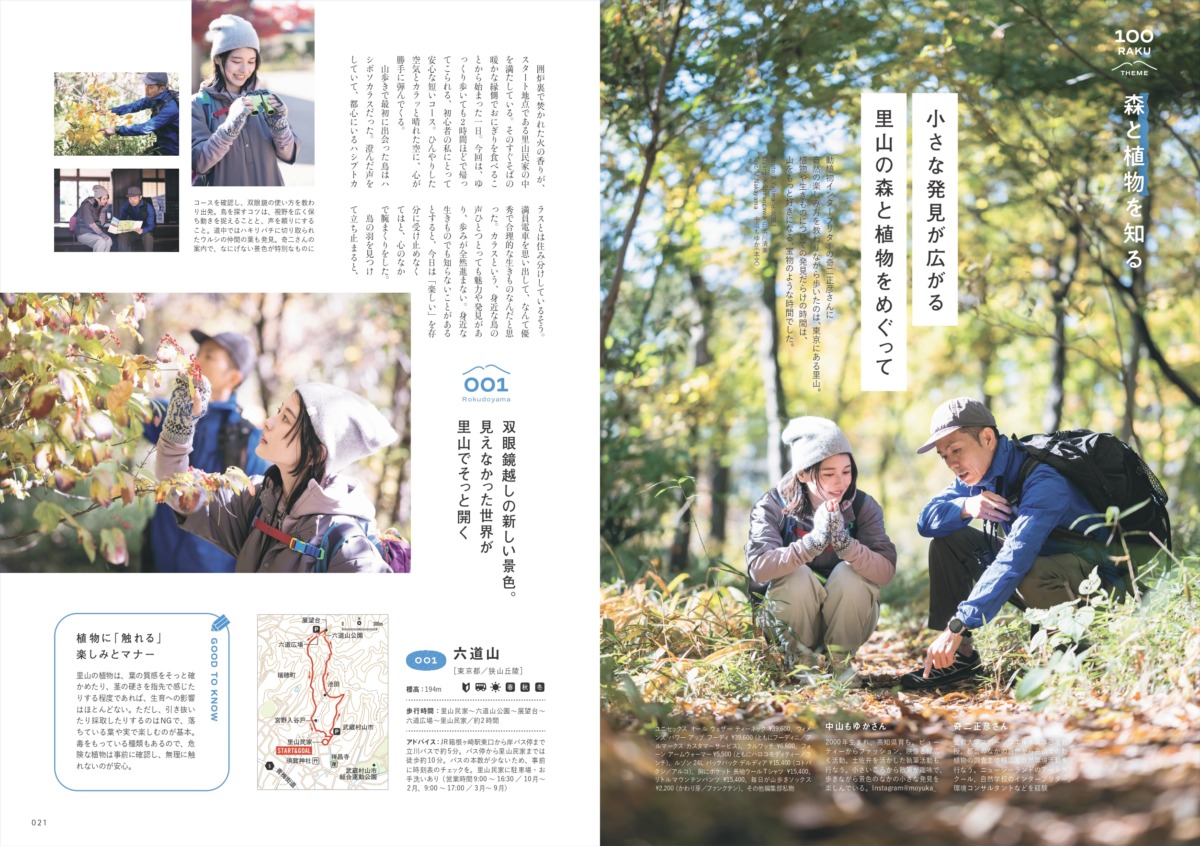 ▲東京にある里山を舞台に、モデルの中山もゆかさんさんが、動植物インタープリターの奇二正彦さんとともに、自然を観察しながら森を歩きます。鳥の声に耳を澄ませ、葉や実の特徴をより深く知ることで、身近な森に新しい発見が生まれます。