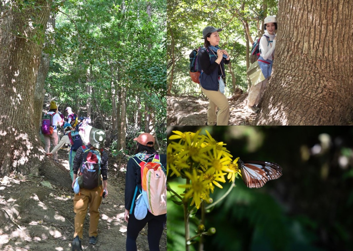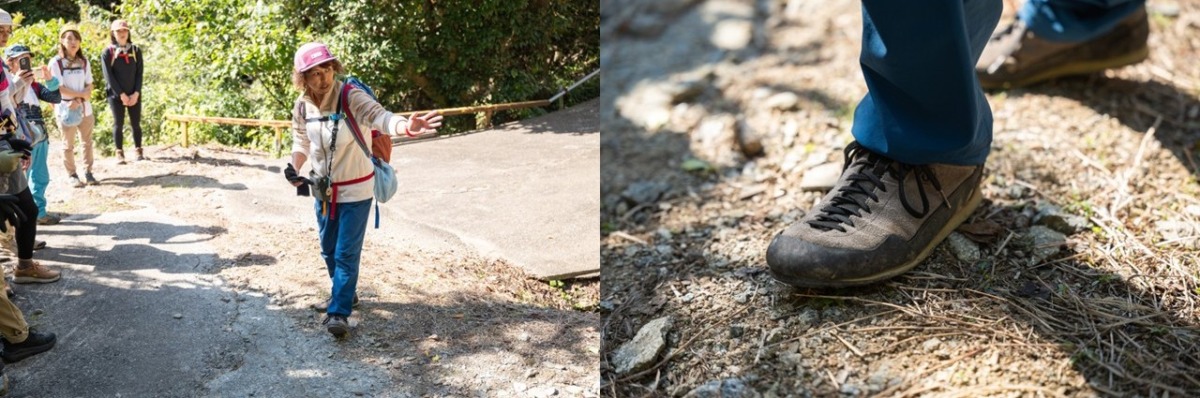 電車を乗り継いで向かったのは、立花山。「自然になるべく負荷をかけない歩き方」を意識しながら、登山道の真ん中に足を優しく置き、森の息づかいに寄り添うように進んでいく。
