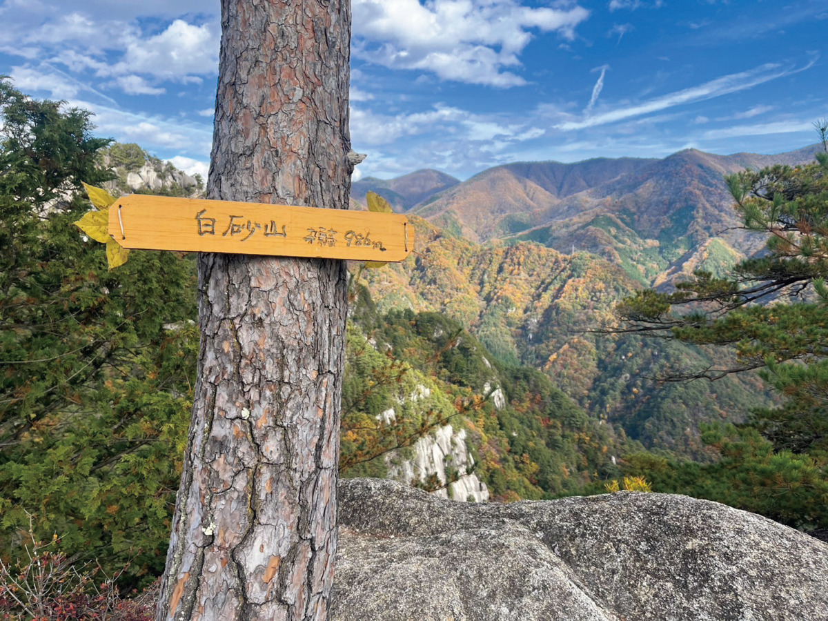 野点には、白砂山に向かう途中にある白山展望台がおすすめ。その名のとおり、白い砂に覆われた美しい場所で、正面に南アルプスを望みながら楽しめる。羅漢寺山を経て向かうのも◎。