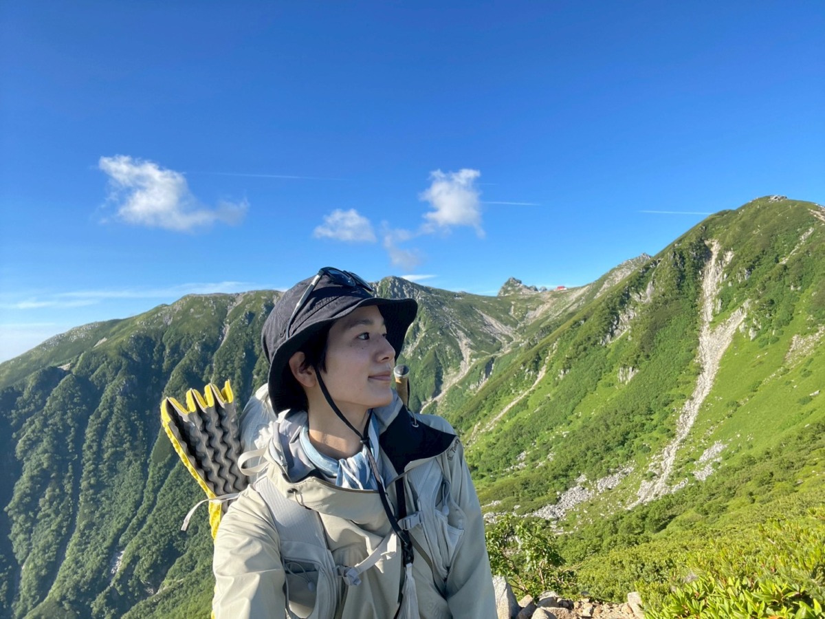 菖蒲さんが初めてひとりでテント泊を楽しんだアルプスの山。2時間ほど歩けば山頂に到着。テント泊に慣れていなくても挑戦しやすいうえ、山上で長時間のんびりできる。