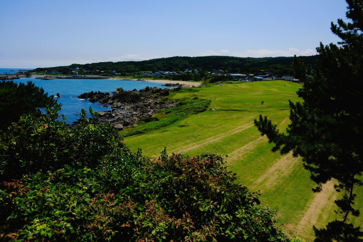 総距離約12.5㎞の八戸セクション。写真は、ハイライトのひとつ、芝生の海岸線・種差海岸。波打ち際まで天然芝が広がる。電車(JR八戸線)でスタート地点に立てるのも魅力。