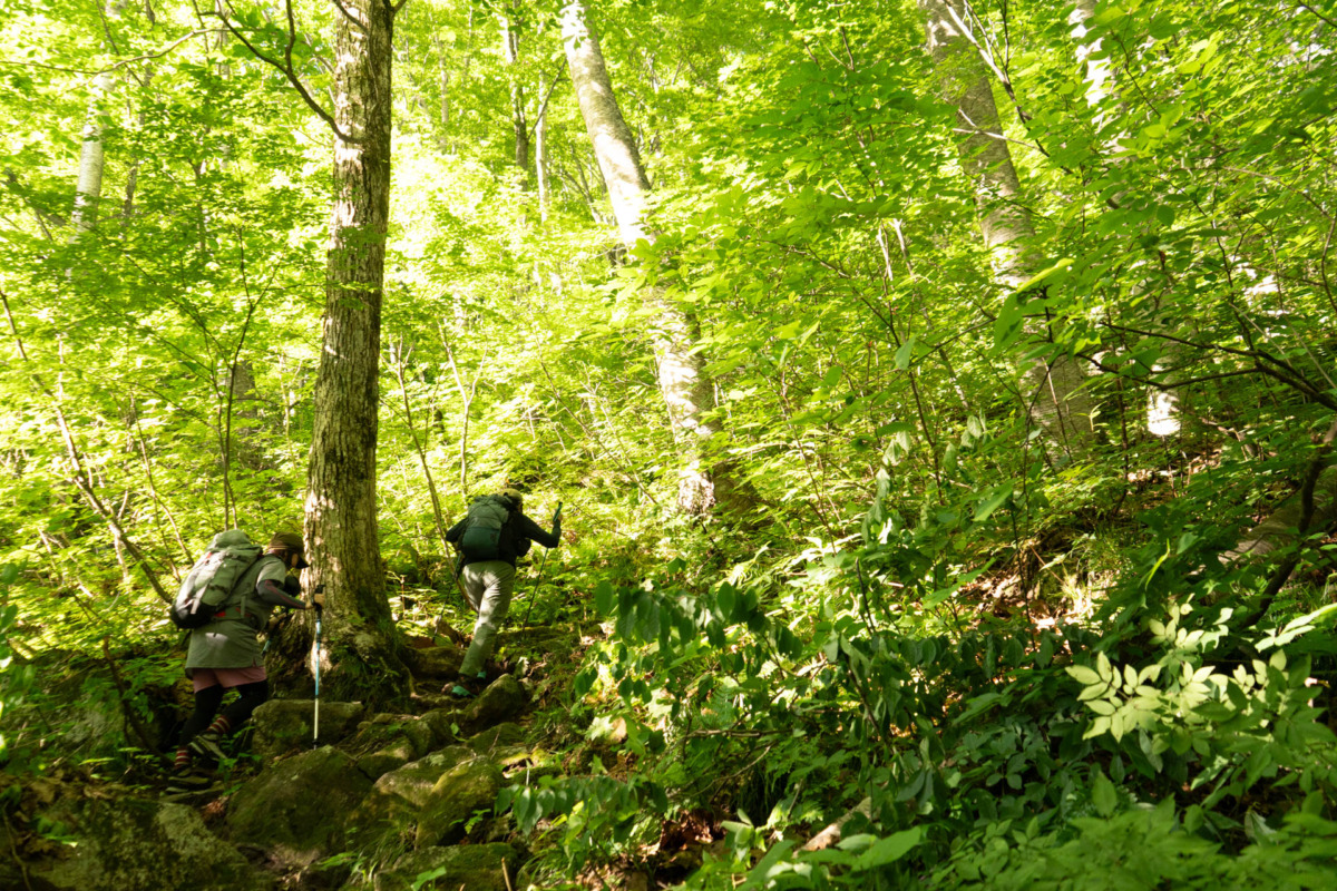 北アルプスの入山初日はどこの登山口からも一気に標高をあげていく。七倉船窪新道も同じだ。1日目のゴールは船窪山荘まで、行程6時間と標高差は、約1,400mもあるのでゆっくり登った。