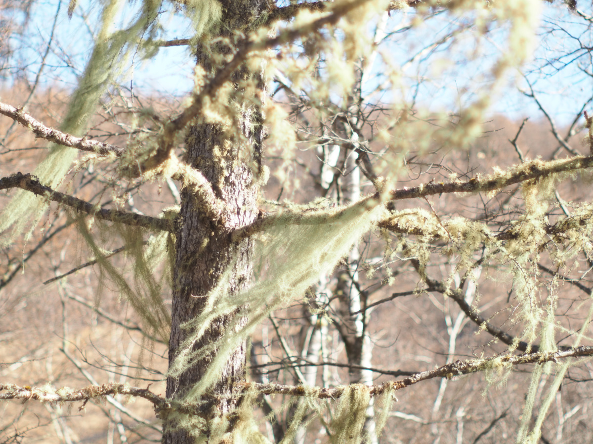 そして、山頂まであと30分。お花畑の脇の道を登ります。実際は30分以上かかっていました。というのも、お花畑を過ぎるとサルオガセの森が待ってきたのですから、撮らない理由がありません。