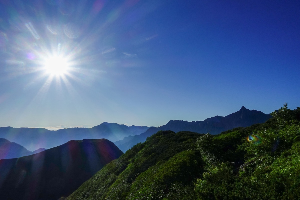2日目は暑さを避けるためにも、暗いうちに出発します。目の前に槍穂高連峰が連なる鏡平小屋に着いたら名物・カキ氷でクールダウン。鏡平から弓折乗越へはもうひと頑張り。乗越からは双六小屋の赤い屋根を目指します。緩やかに双六谷にはハイマツ帯が広がり、小屋の奥には鷲羽岳がすっくりとそびえていて、山の深さを感じられます。