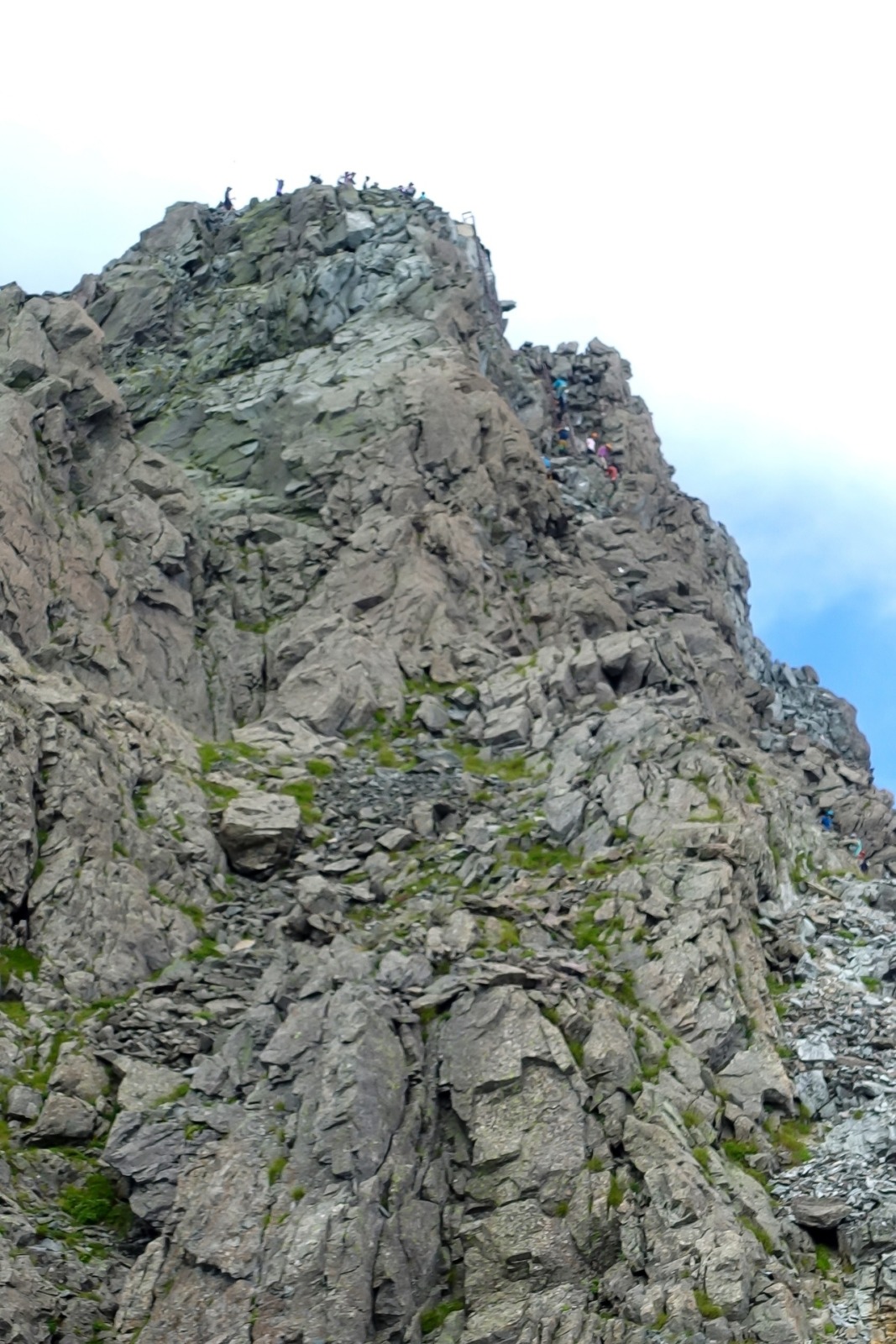 千丈沢乗越からは急登が始まりますが、槍に励まされて登り切ることができます。穂先の人がわかるようになると、あとわずかで槍の肩。