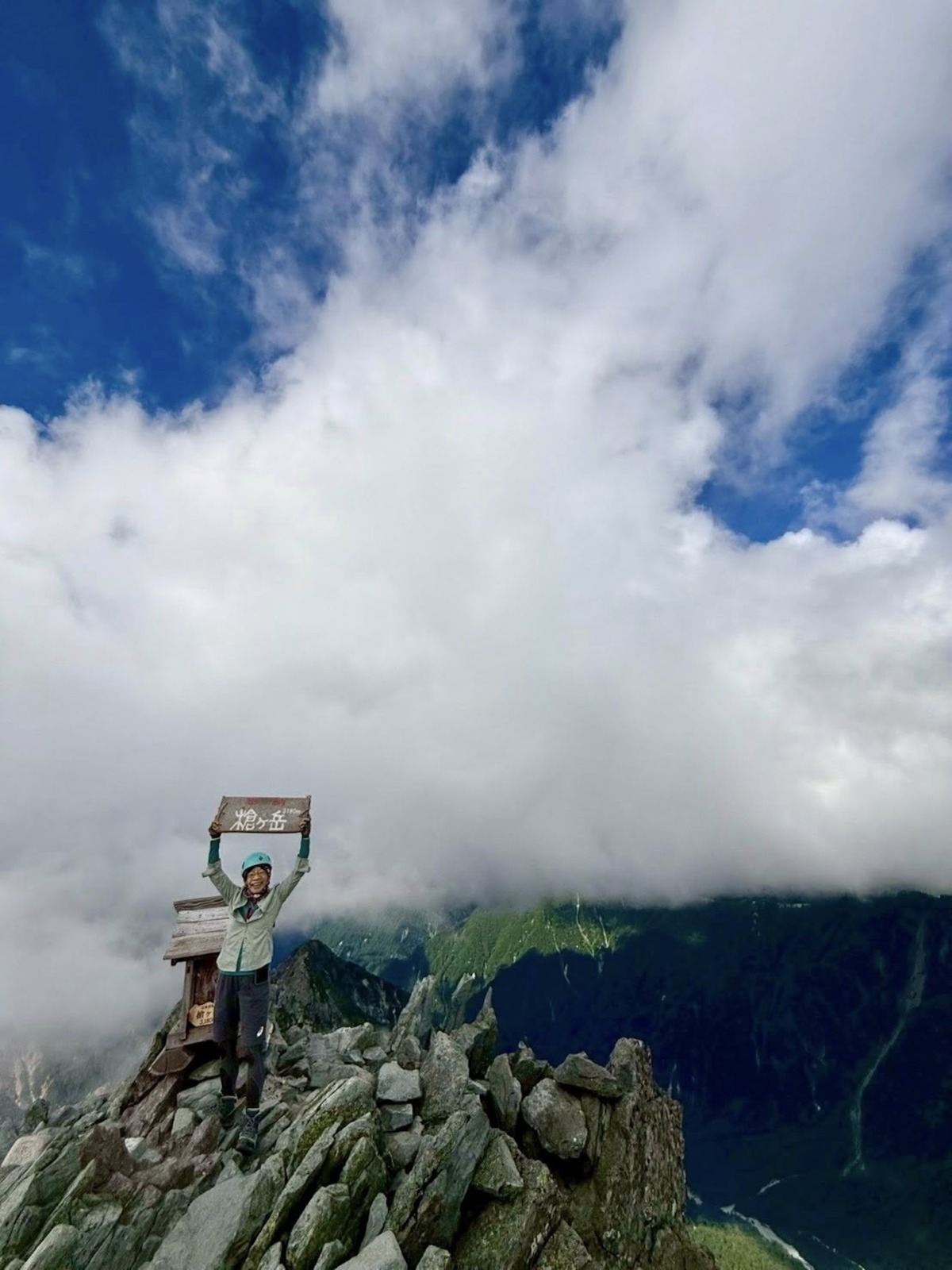 槍ヶ岳山荘に着いたら、受付をすませてからヘルメットを装着、軽装で頂上へと向かいましょう。ヘルメットは槍ヶ岳山荘にレンタルもありますが、数に限りがあるので要注意。なるべく持参することをおすすめします。