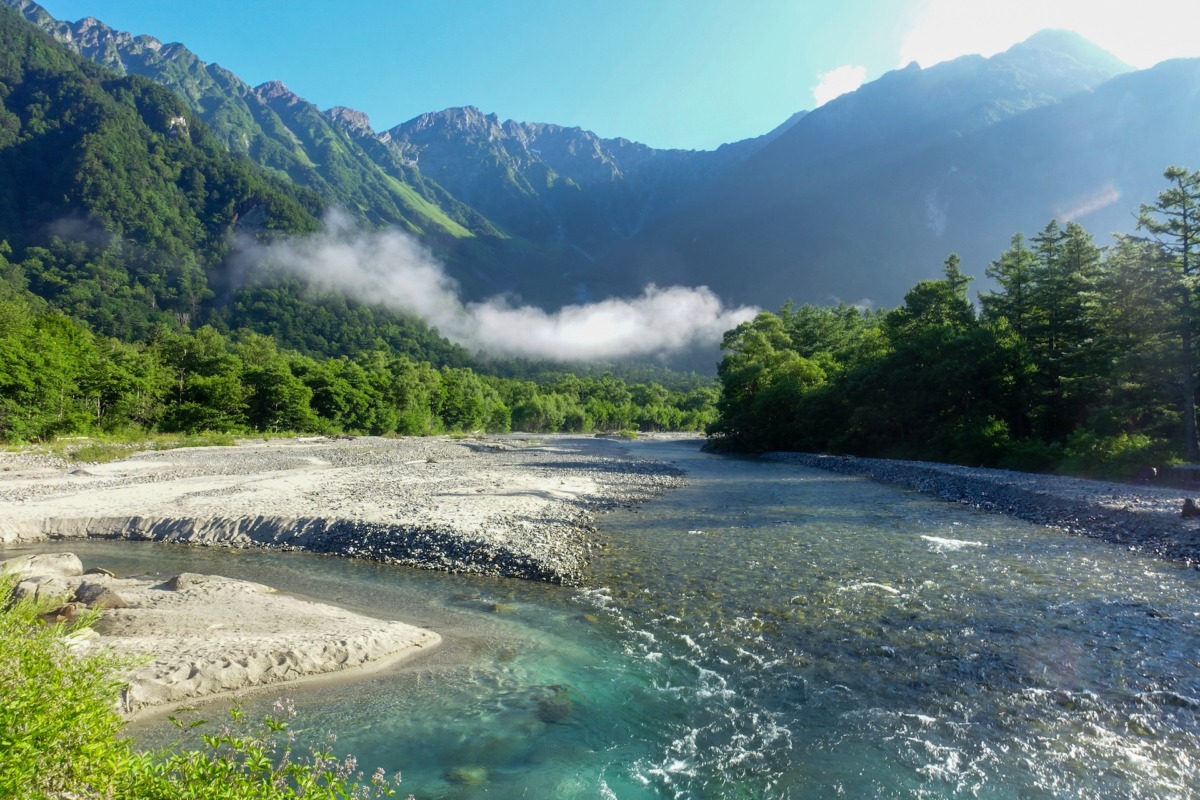朝食が済んだら、上高地へ下山です。危険な場所はありませんが、とにかく長いので早立ちしましょう。グリーンバンドまでは時々ふり返ることを忘れずに。U字谷となった槍沢の奥に、昨日登った槍がドーンとそびえて圧巻です。ただし、ふり返るのは足場を確認して立ち止まってからですけどね。その後は淡々と槍沢左岸を降りていきます。途中の槍沢ロッジの名物槍カレーでエネルギー補給をしたら、ひたすら降りる。横尾、徳沢を通り過ぎ、明神を過ぎれば上高地はもうそこです。