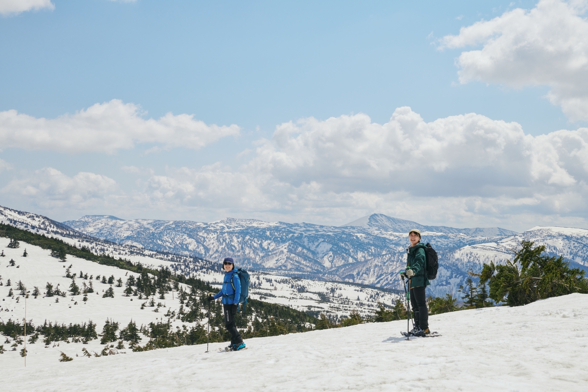 なかでも八甲田山は、春のスノーシューハイクにうってつけの場所。ロープウェーに乗れば短時間で展望の開けたエリアに立つことができ、雪原ならではの爽快感を手軽に味わえる。また、天候によってロープウェーが止まった日でも、酸ヶ湯温泉から静かな樹林帯コースへ歩き始められるのが心強い。天気や気分に合わせてルートを選べる柔軟さがあり、その懐の深さこそ八甲田山の魅力だ。