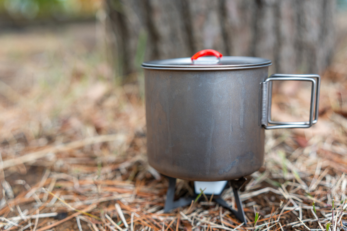 調理器具(320g)。テント泊では、固形燃料を持ちます。