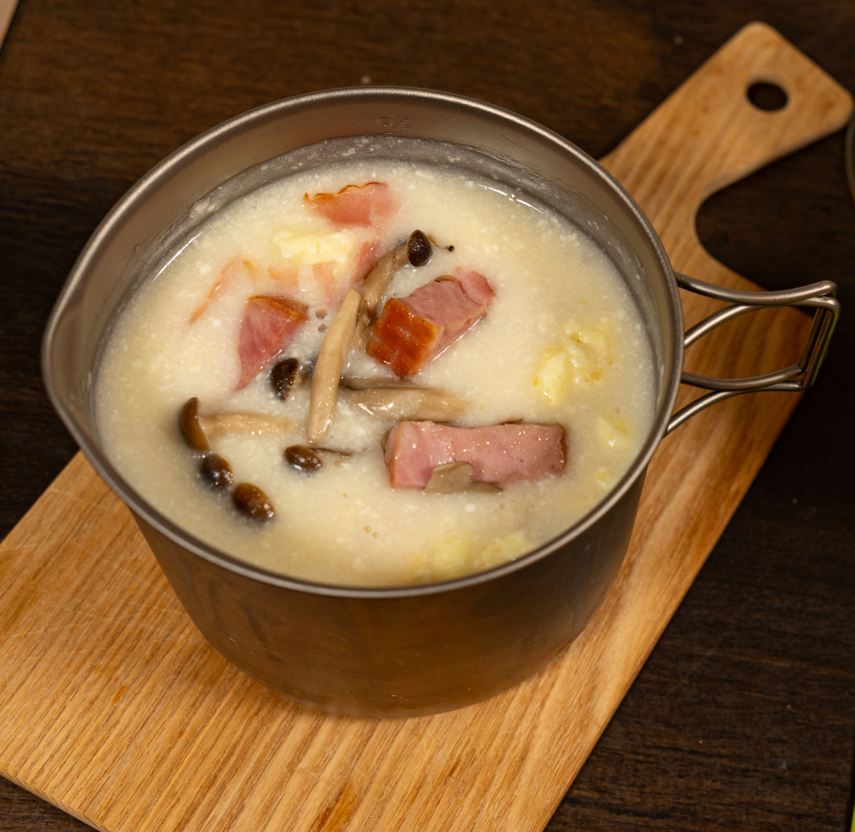 マットやシュラフなど削れない装備が多いため、調理器具と食材の軽量化に取り組みました。そして私が大事にしていることは、気分のあがるものを!です。