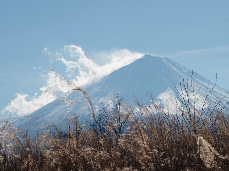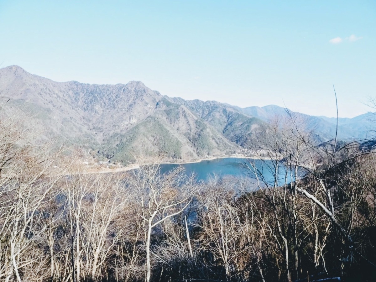 三湖台に着くと、目の前に現れた富士山の大きさに思わず息をのみました。展望台からの眺めは圧巻。「すごい!」と何度も声がでてしまいます。横には昨年登った大室山も見え、それもまたうれしくなりました。そして何より心に残ったのが、西湖の青さ。冬の澄んだ空気の中で輝く深い色は、まさに西湖ブルー。