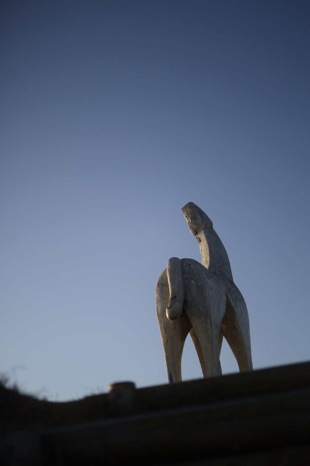 和田峠から陣馬山山頂まで、朝日を感じながらよく整備された巻き道を歩くと、ほどなくして山頂が見えてきました。あの白馬です。