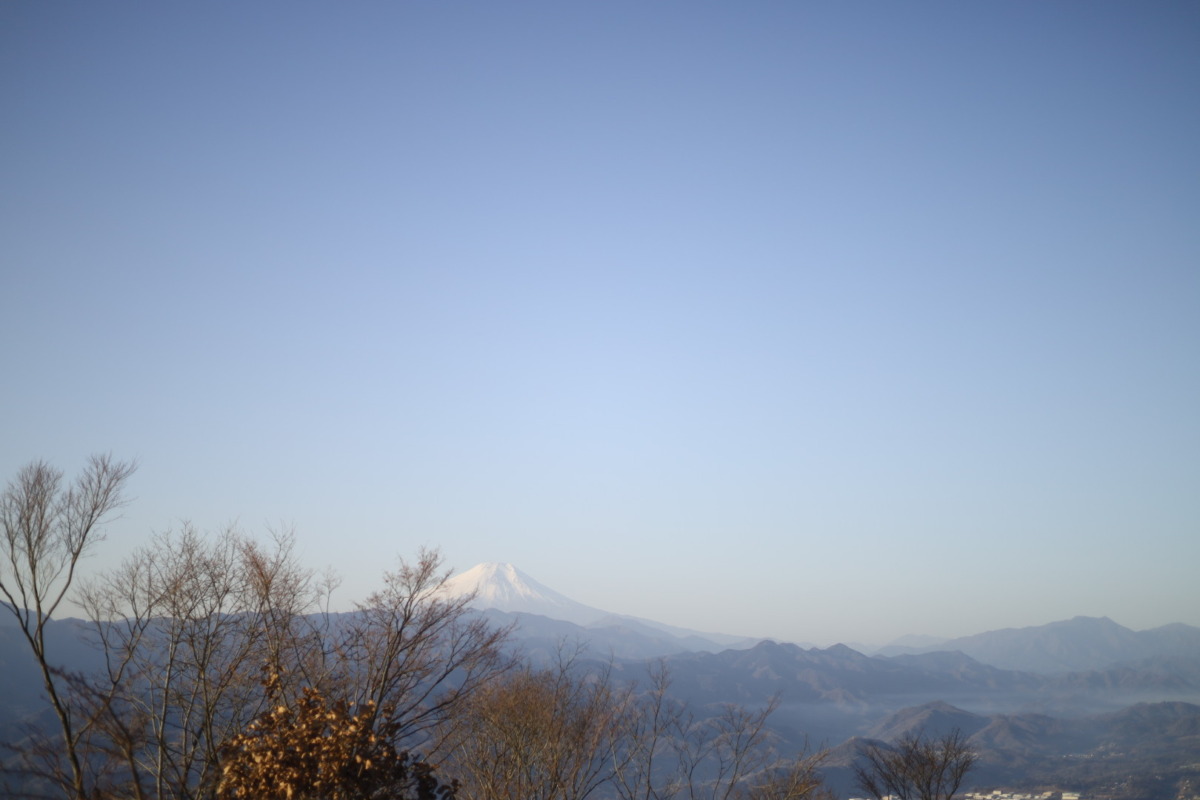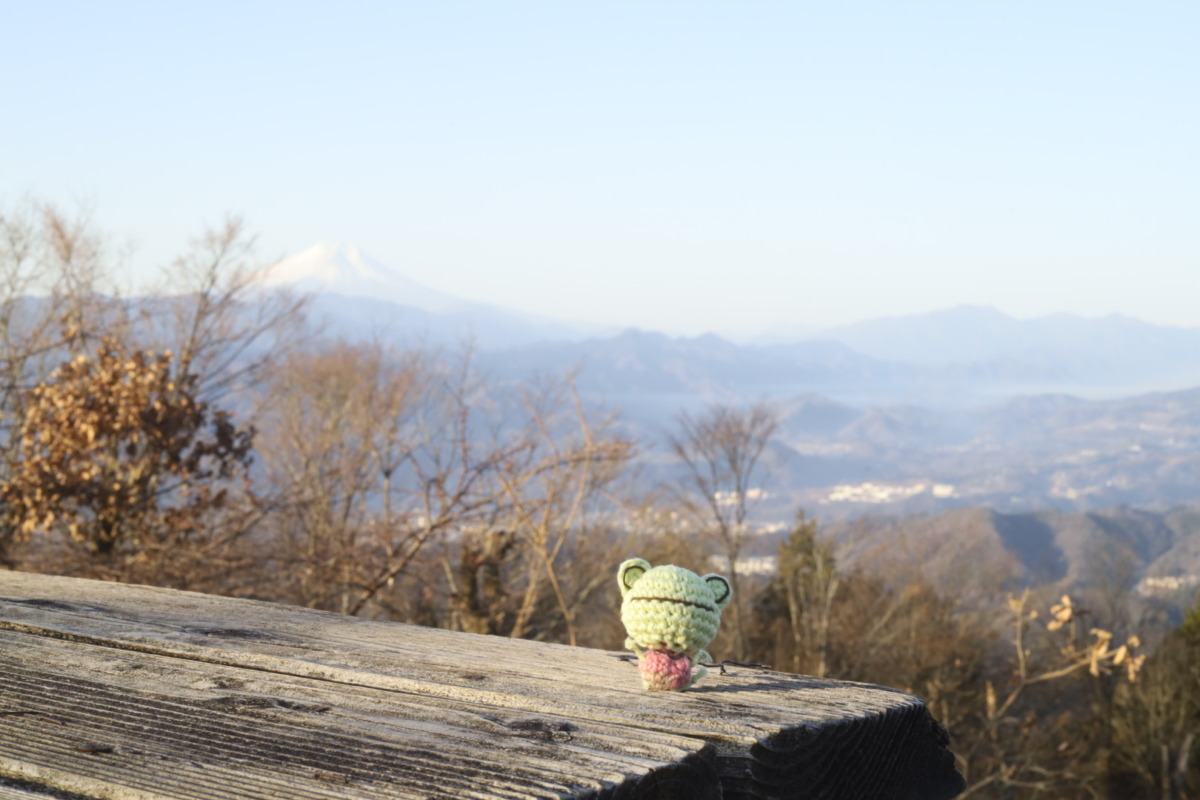 朝早い時間なので登山客も少なく、山頂の景色をのんびりと堪能できました。この季節の高尾山系の山で見られる「氷華(シモバシラ)」は、気温が高かったため見られず残念!