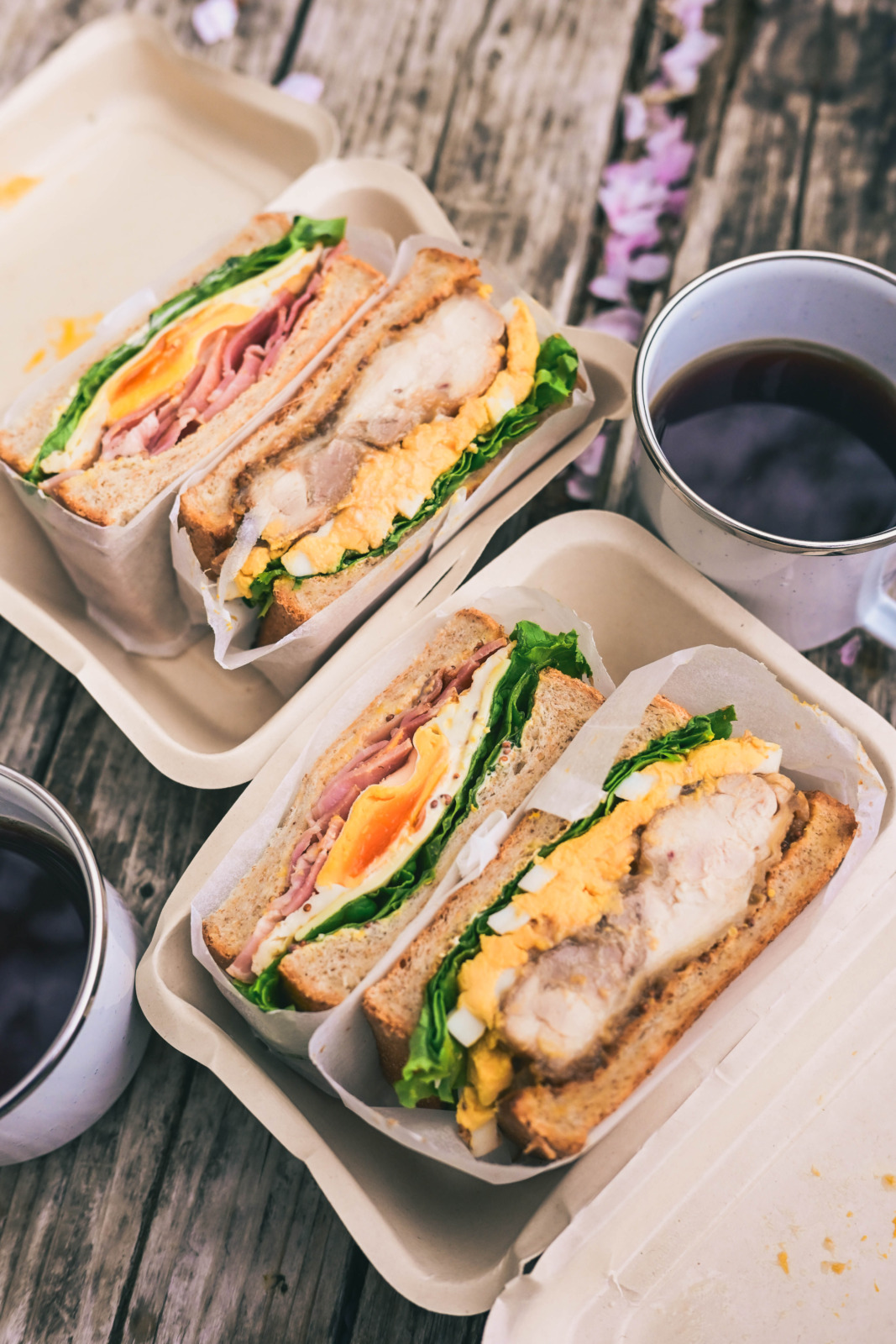 山頂には大きな桜の木が。足元には散り積もった花びらが広がり、淡いピンクに染まる景色のなかで、手作りのサンドイッチと温かいコーヒーを広げました。ひらりと花びらが舞い落ちるたび、春の静けさが、そっと広がります。