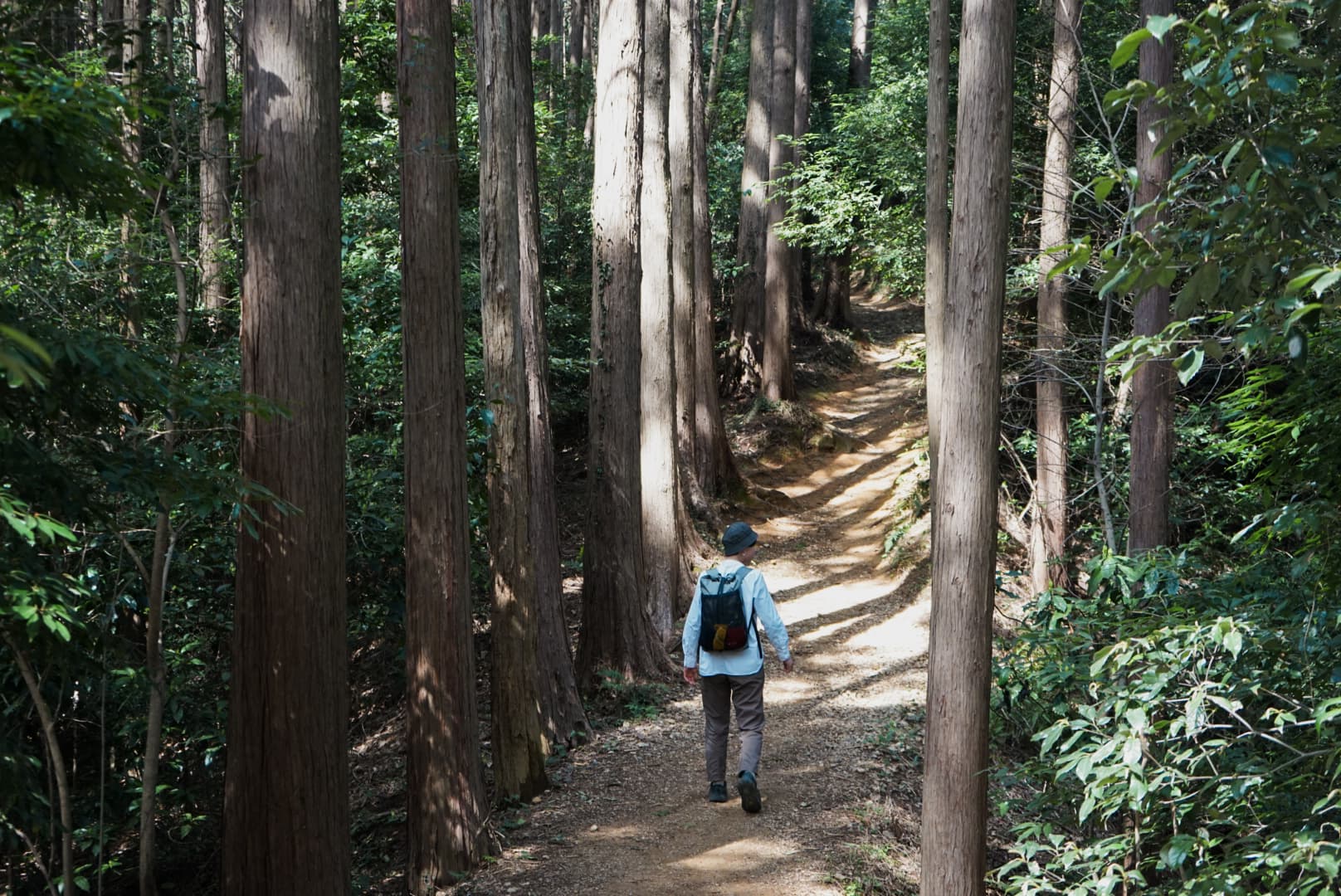 駅を出て道路を渡れば、静かな林道のはじまり。序盤の上り坂は道幅が広くゆったりとしているので、仲間との会話を楽しみながら歩けるのがうれしいポイントです。