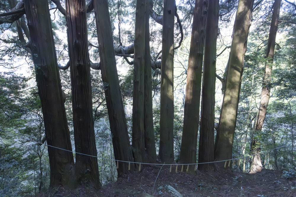 ▲東本宮裏に立つ、見た目で数えると7本に見えない「七本杉」。じつは見た目の本数ではなく、根が七本つながることに由来する名前だそう。おもしろい!