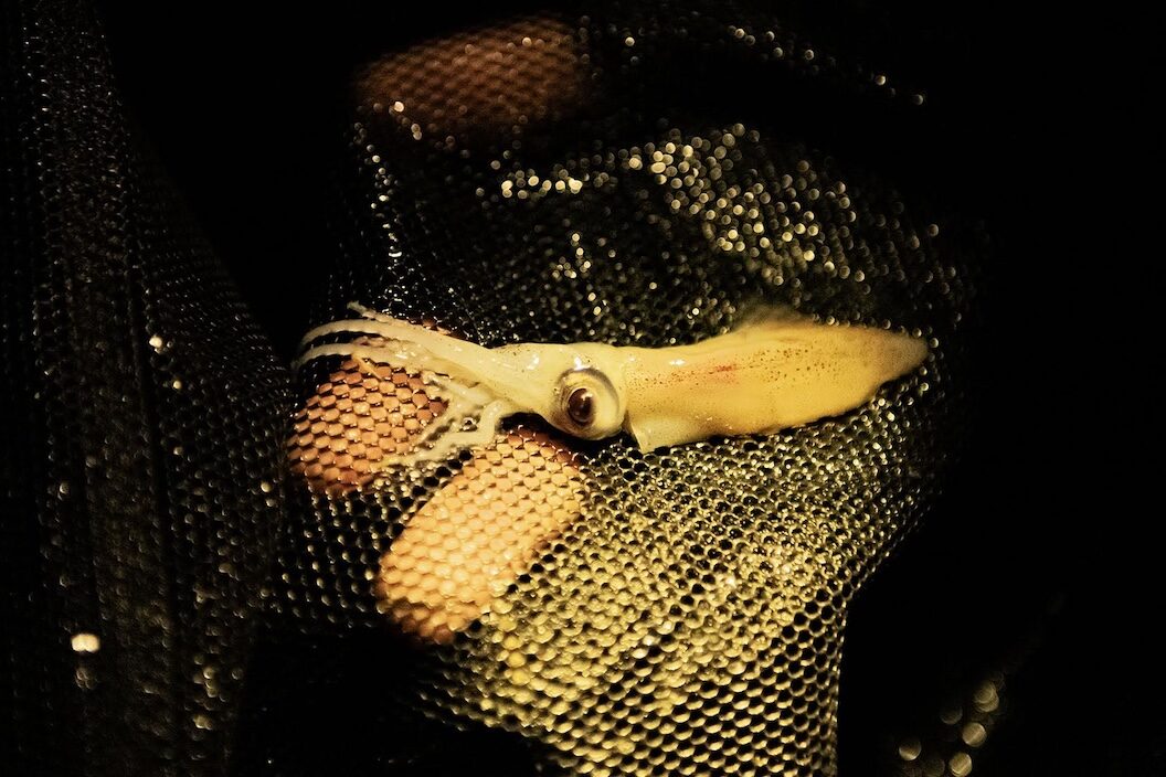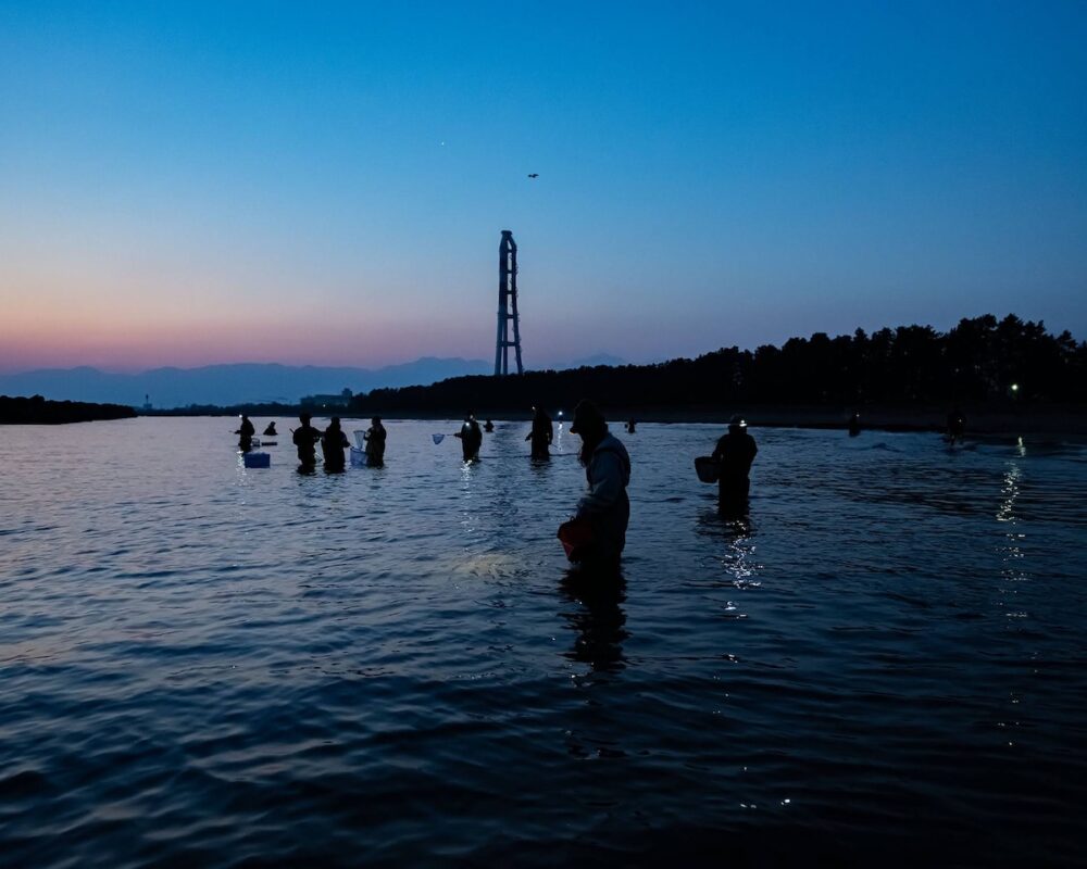 今日は一杯すくえるかどうかも怪しいかもしれない。心が折れないよう、ひたすら海の中を歩き続ける。波の音だけが響き、自分しかいないような不思議な感覚に陥っていく。ふと気づくと空が白み始めていた。釣果はゼロ。こんなもんかと思っていたら、友人がボソリと「ホタルイカ、一匹も見られなかった」。