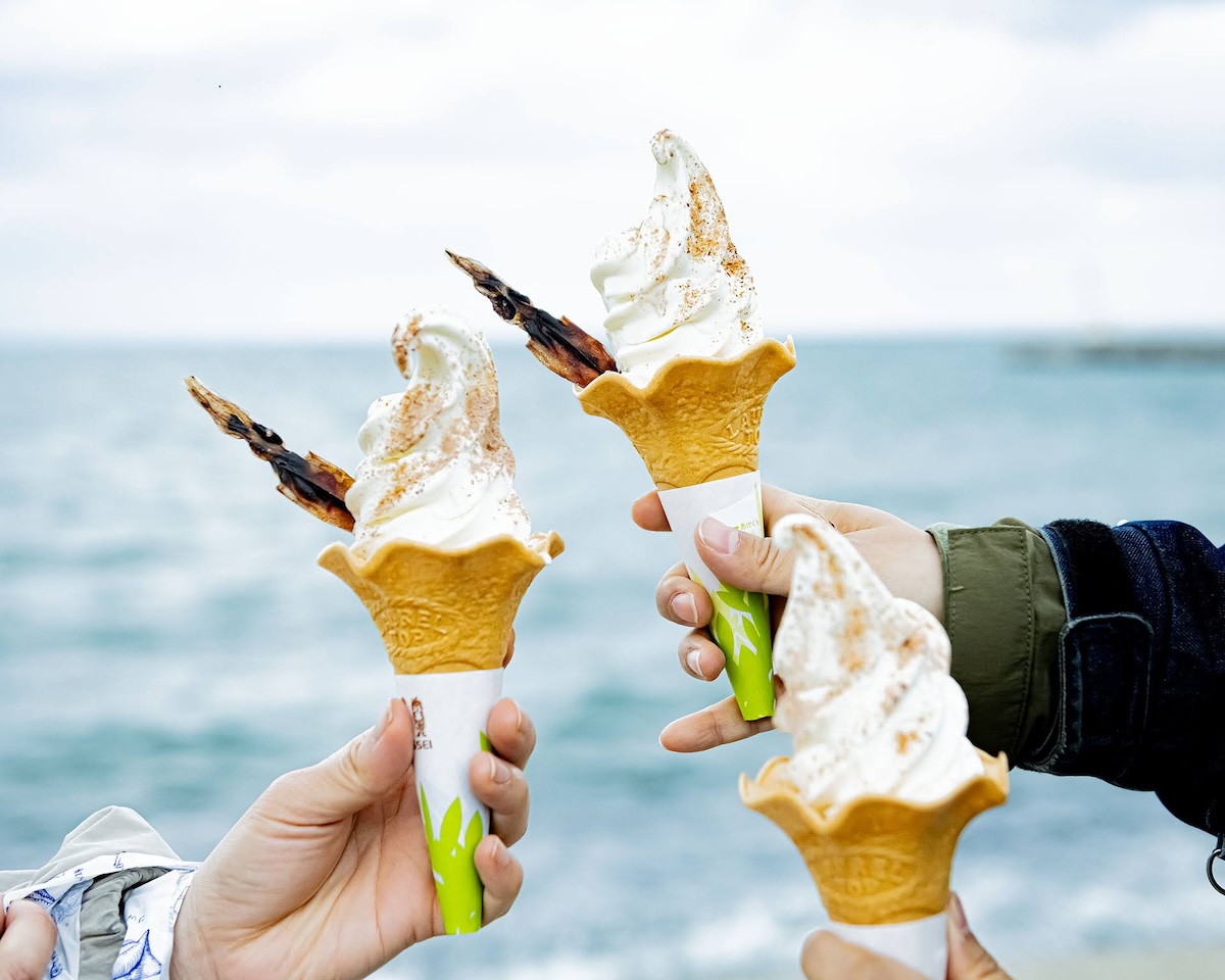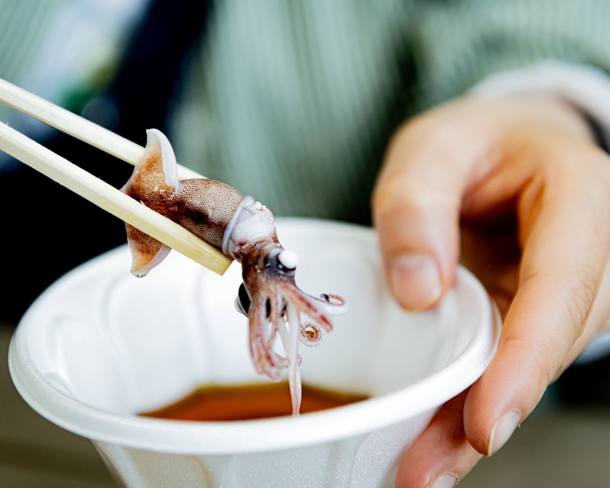 その日の昼は、ほたるいかミュージアムで新鮮なホタルイカのしゃぶしゃぶを味わった。さらに生のホタルイカを買い込み、そのままキャンプの夕飯に。あまりの新鮮さに、自分たちで獲ったような気分になってくる。