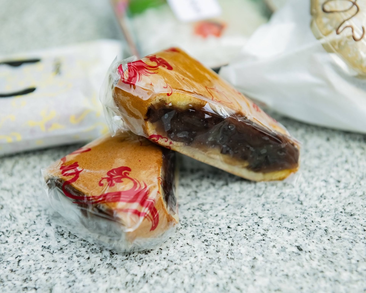▲めずらしい形のどら焼き屋「大塚屋」や、酒店「酒商田尻本店」に立ち寄った。