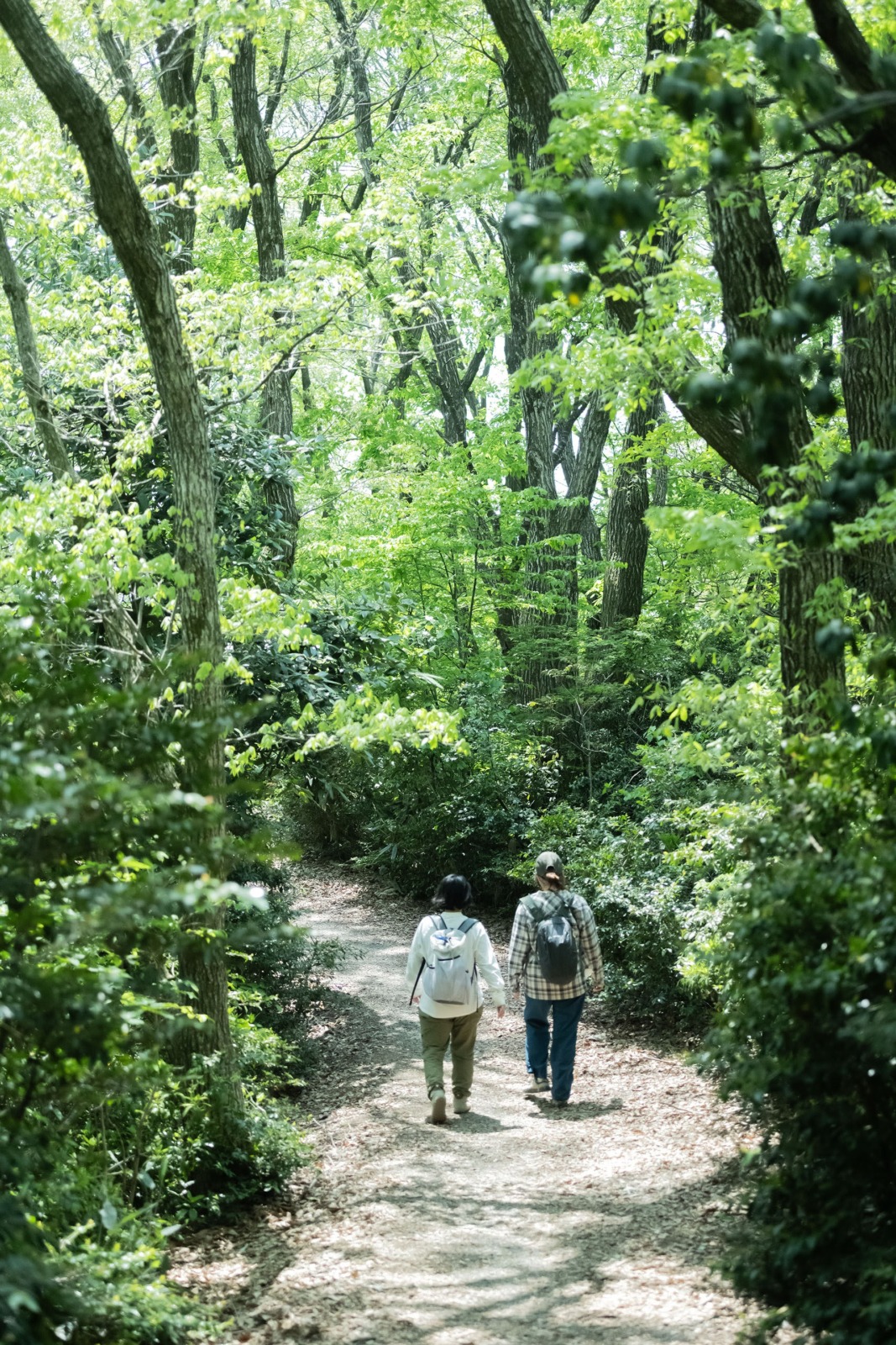 街からほど近いとは思えない、大木が立ち並ぶ森を歩く。緑の多いコースは夏でも木陰が心地よさそう。1年をとおして楽しめる裏山がある街は、なんだか羨ましい。