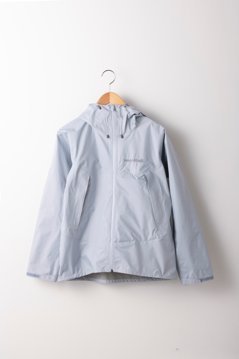さわやかなアイスブルーのアウターをメインにしたコーディネート。アイテムはすべてモンベル。同系色のネイビーのパンツとキャップでコーデを引き締め、ベースレイヤーに選んだボーダーをポイントに。パンツは股下サイズが選べるなど、豊富なサイズ展開があるのもうれしい。山歩きに必要な機能性をしっかりと備えながら、コストパフォーマンスもよし。国内に120店舗以上の直営店があることから、手に取りやすいのも魅力のひとつだ。